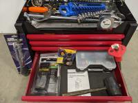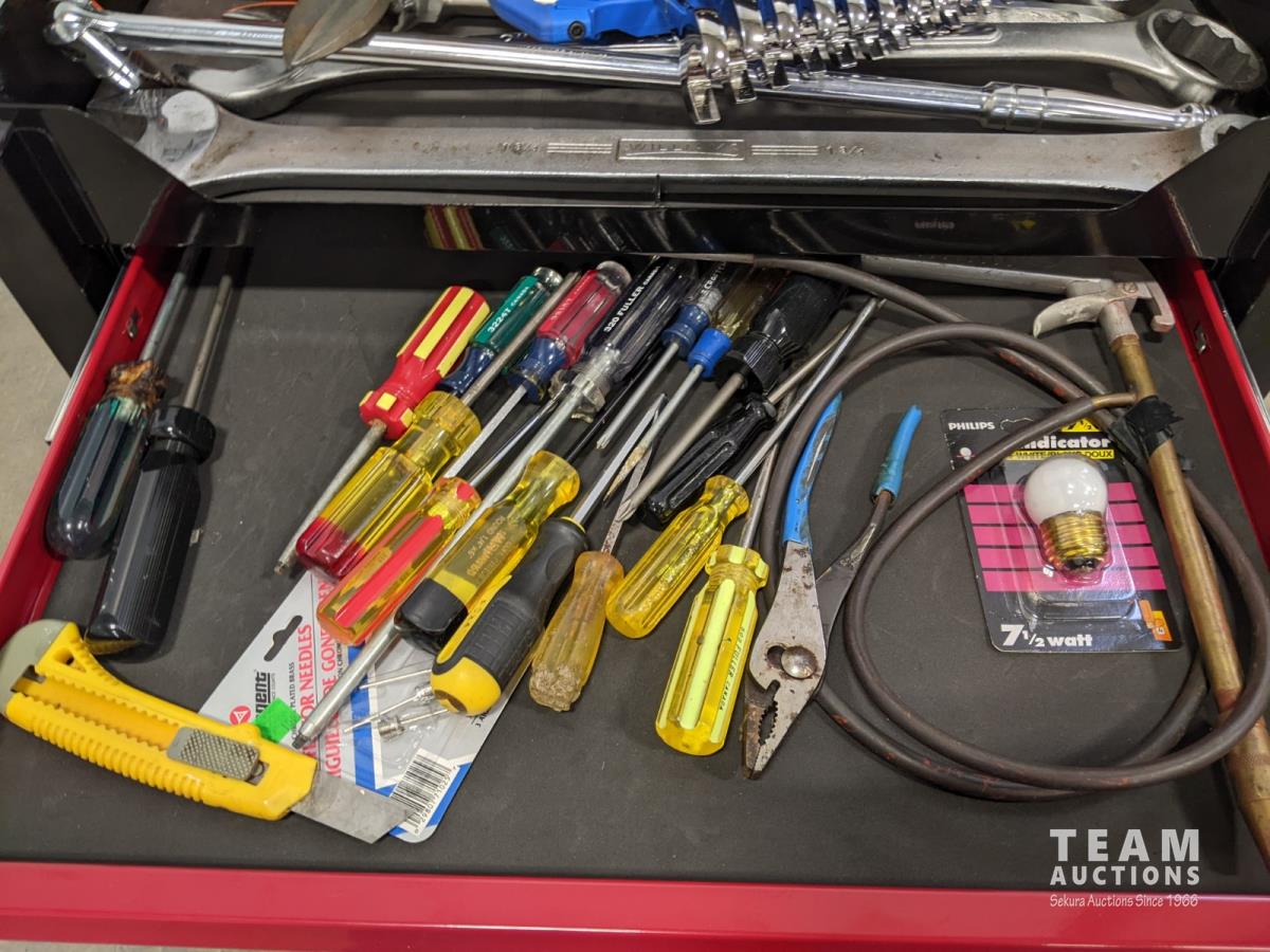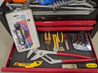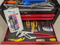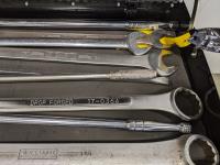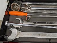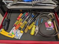 Wrench set, heavy duty wrenches, screwdrivers, files, staple gun, exacto knives, pressure gauges and rubber hammer