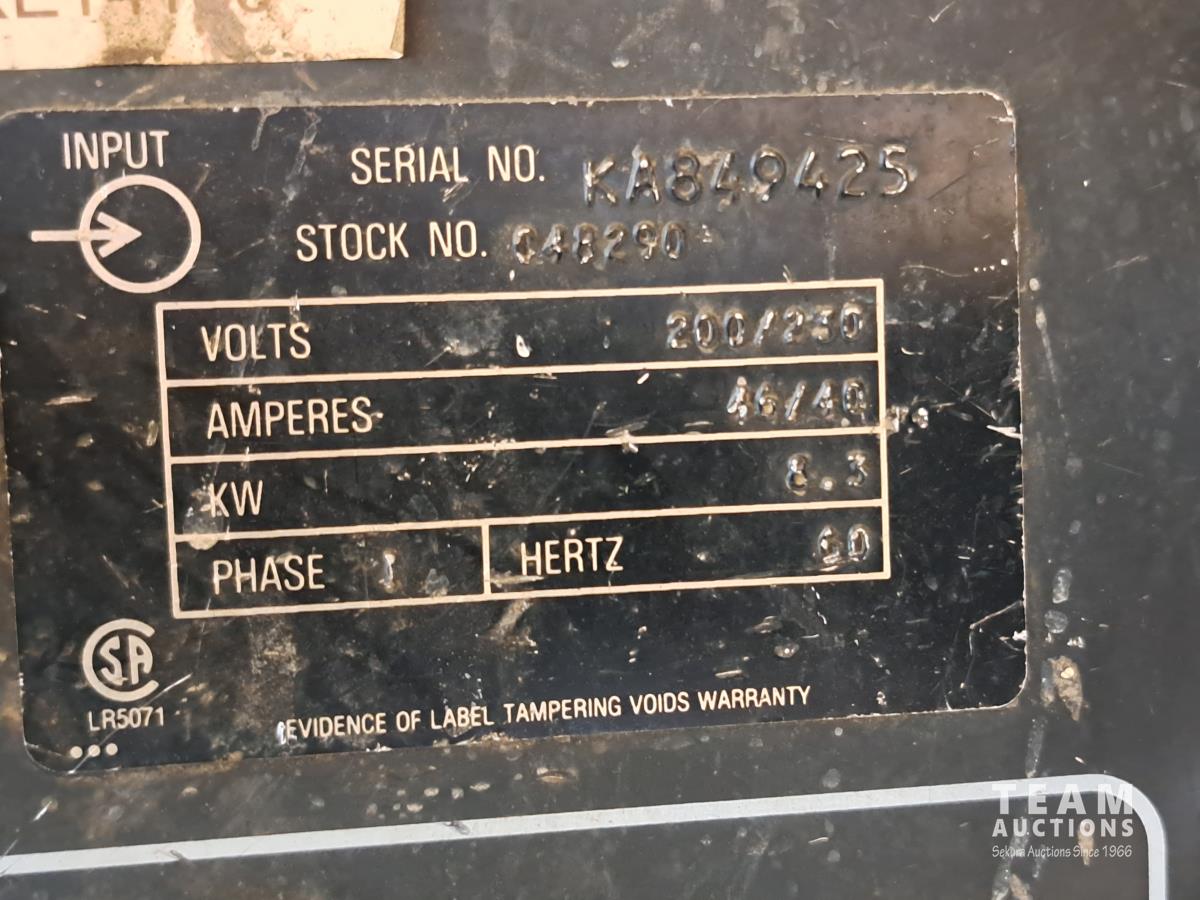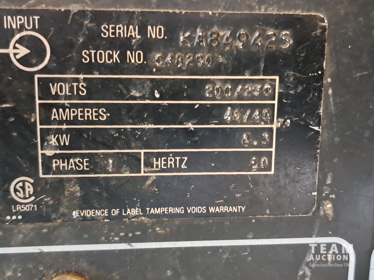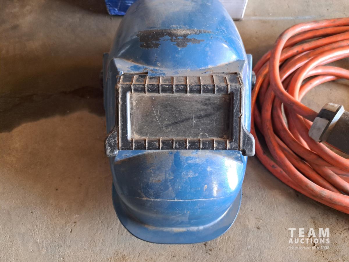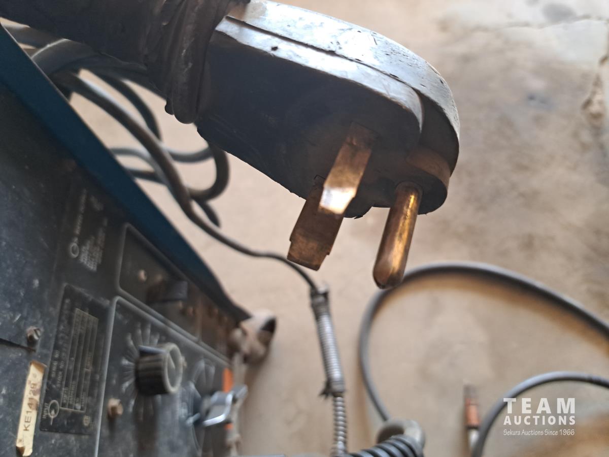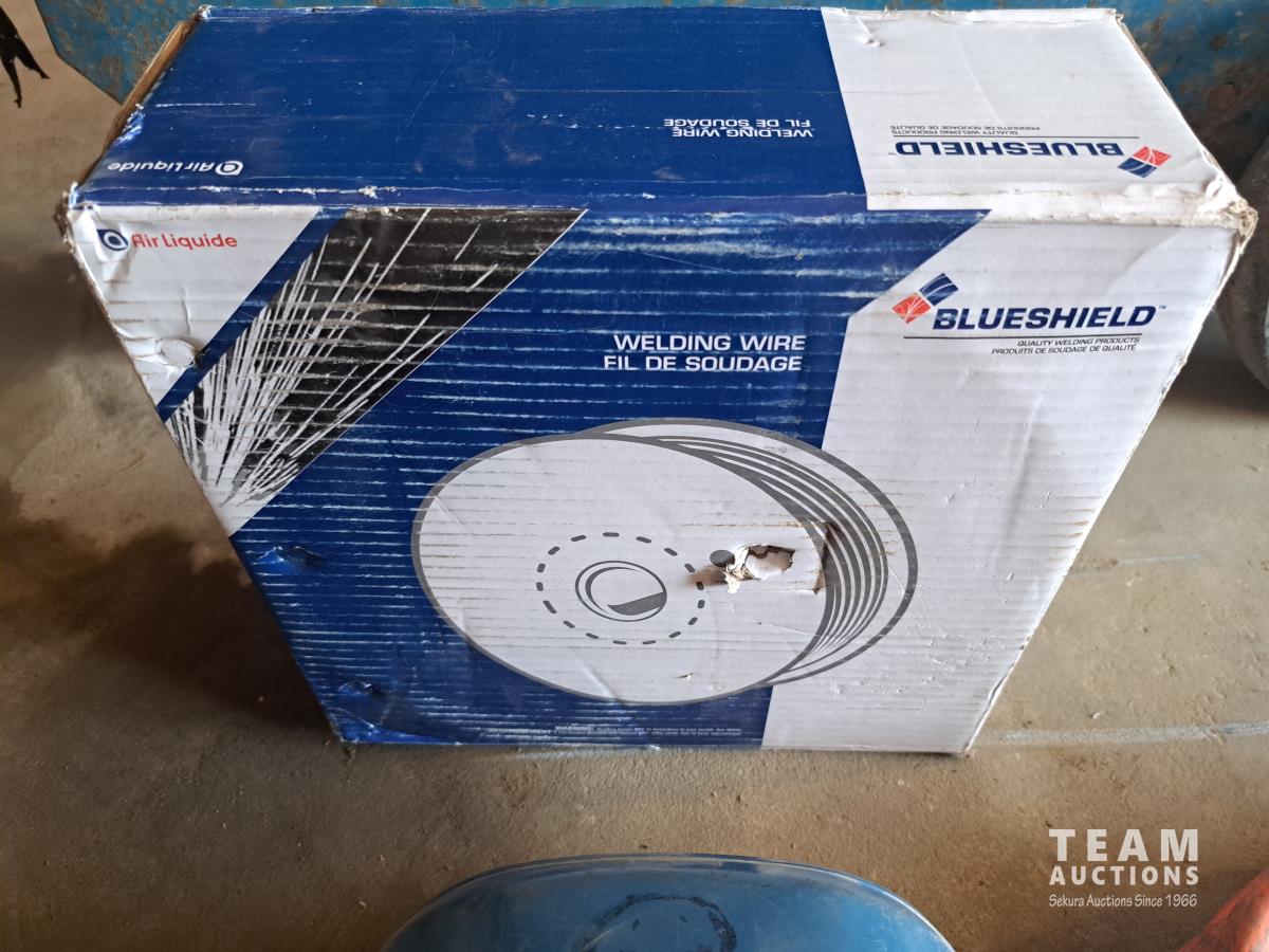 CV-DC Welding power source wire feeder, spectrum 375 cutmate DC plasma cutting system, (1) box blueshield welding wire, welding mask, (1) 30 amp x 20' power cord, (3) bags misc welding supplies and manuals