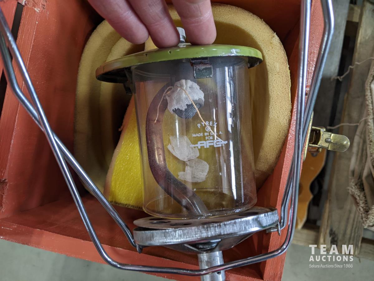 3 tier shelf, handsaw, furnace filter and antique grinder/mill