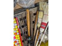 Golf balls, baseballs, horse shoes, vintage curling brooms and baseball bats