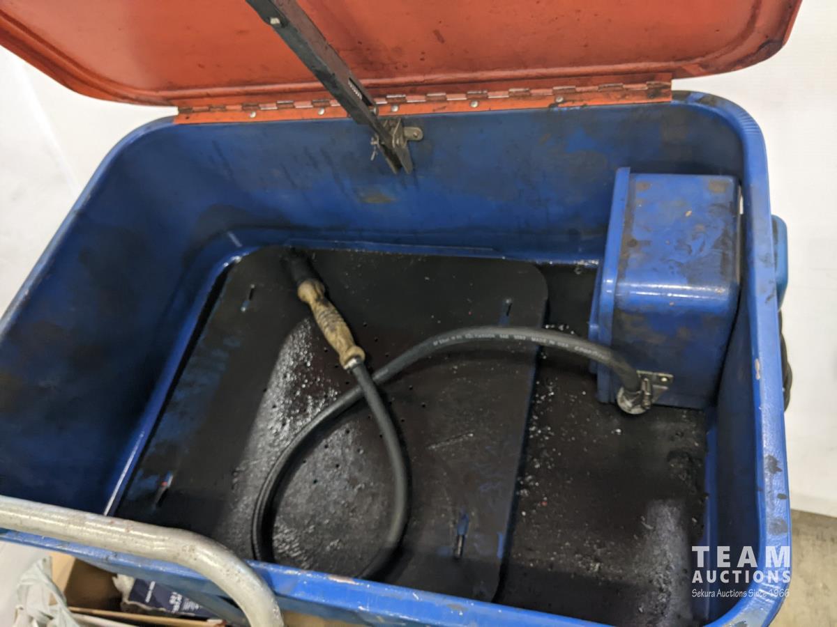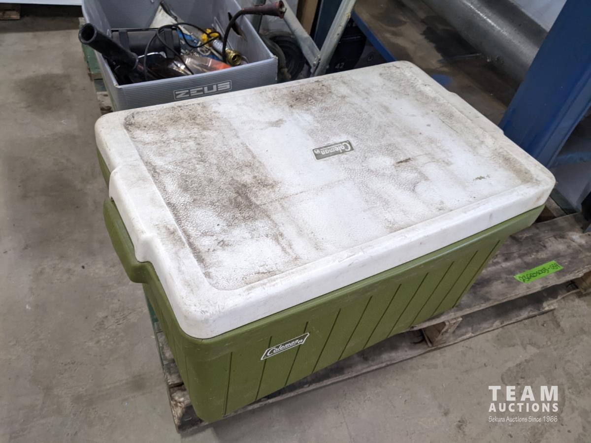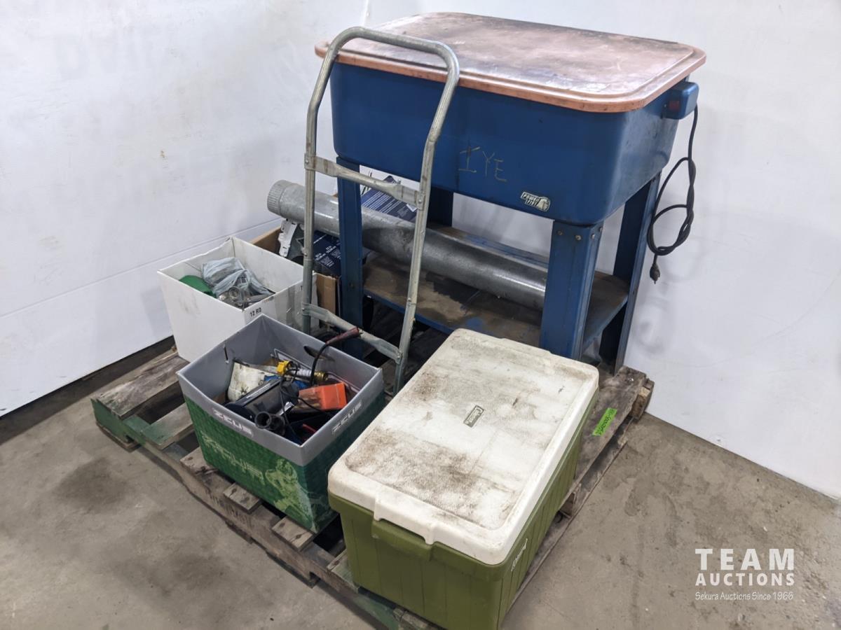 Power Fist parts washer, ducting, mastercraft drill bits, dolly and coleman cooler