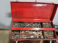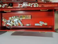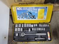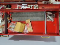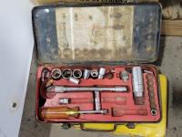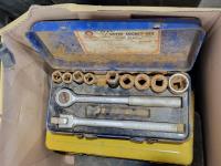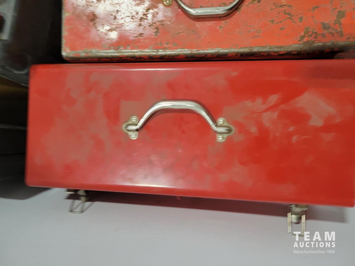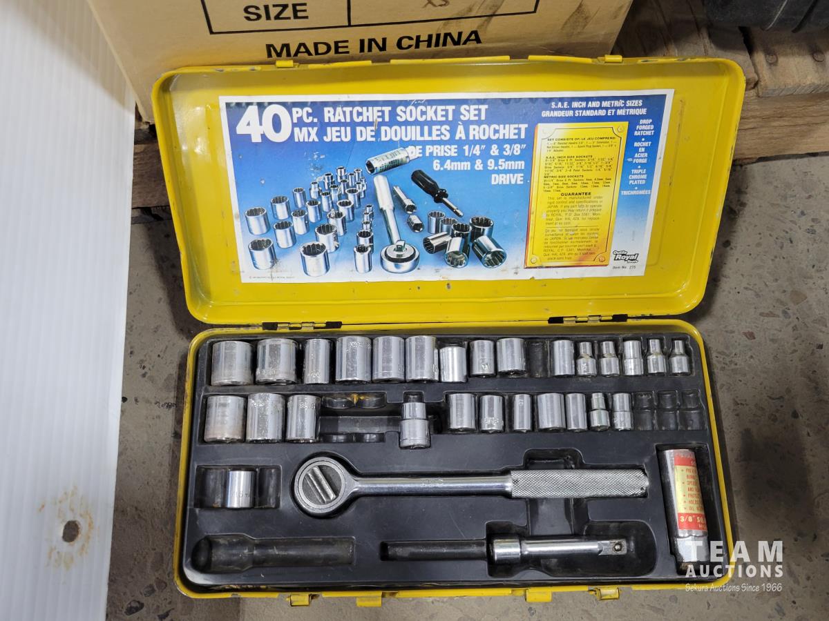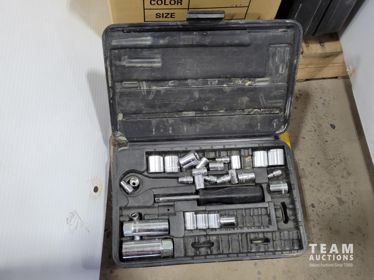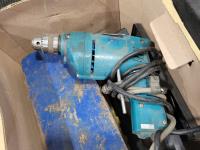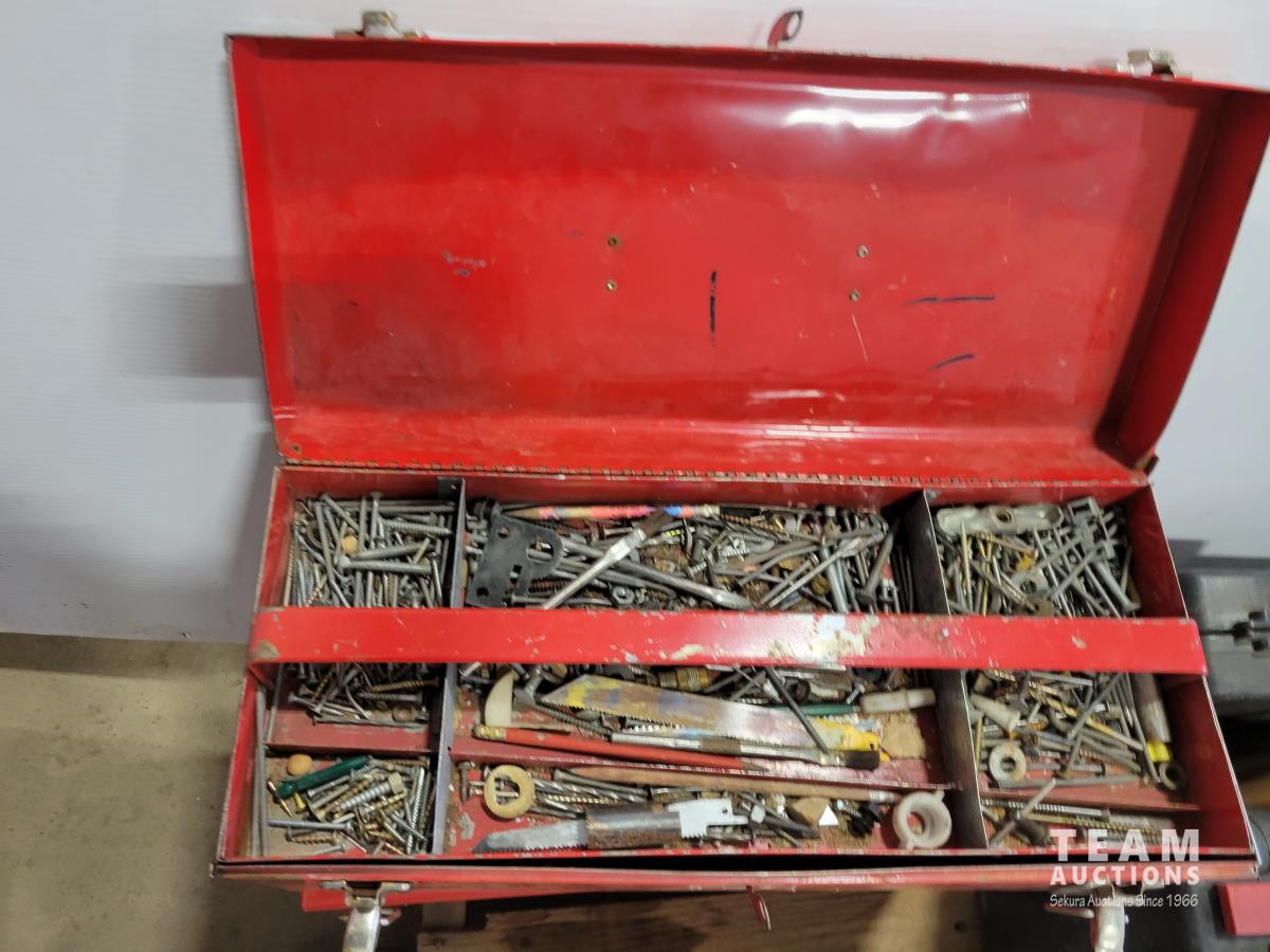 Skil 14.4V drill with charger, metal tool boxes with contents, King Canada jig saw, Mastercraft multi-purpose saw, stapler, electric staple gun, assorted socket sets