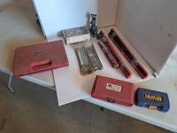 Mastercraft tap and die set, brake pad & caliper wind back kit, assorted sockets, deluxe hubcap and wheel lock removal kit, 21 piece metric socket set, drill grinding attachment and Irwin socket set bolt grip extractor