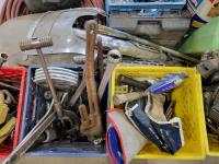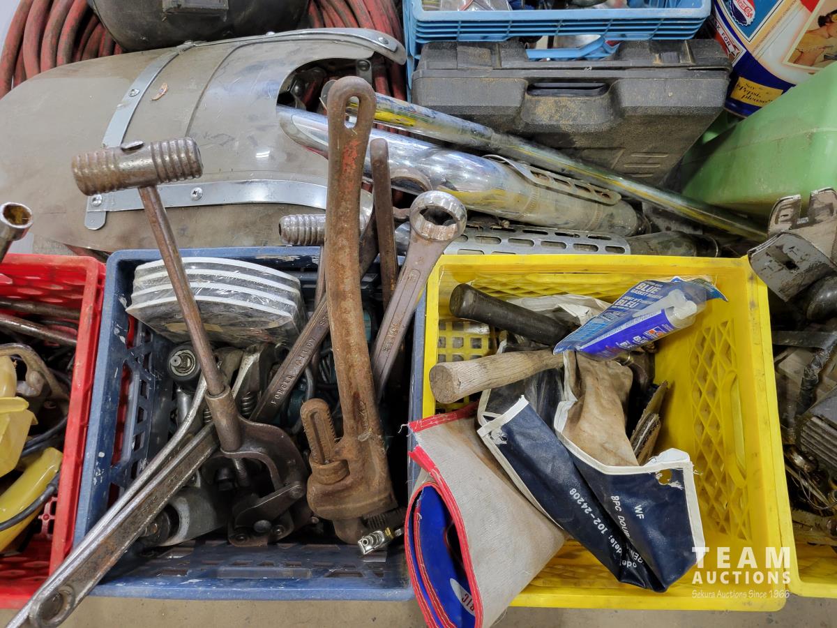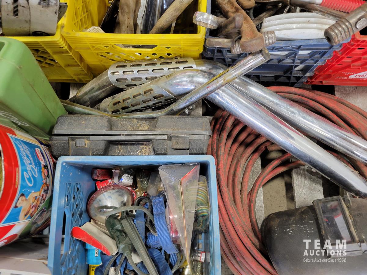 Various hand tools, motorcycle accessories and welding helmet