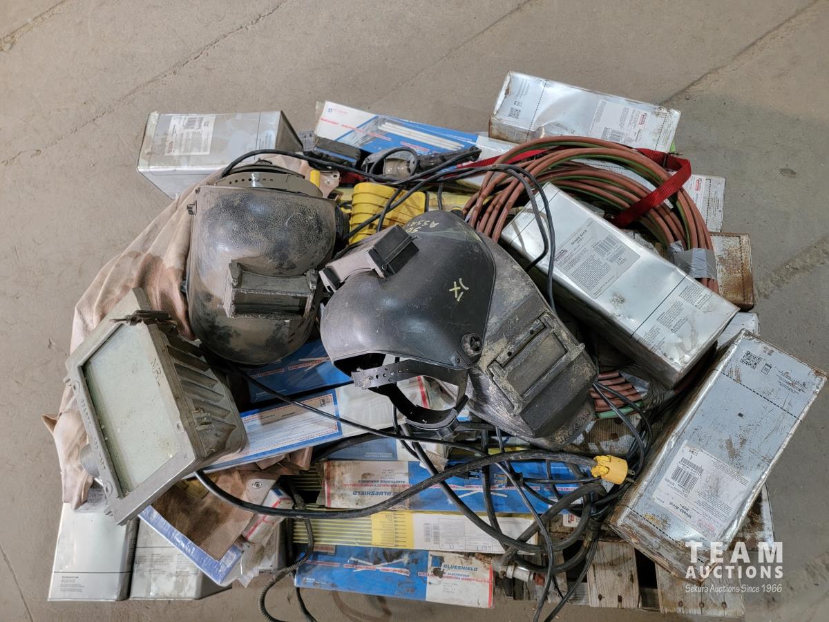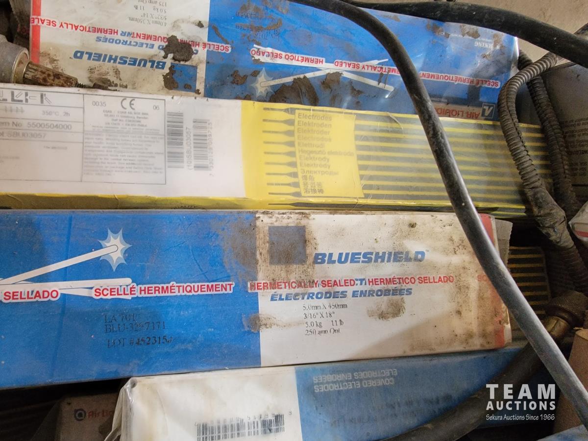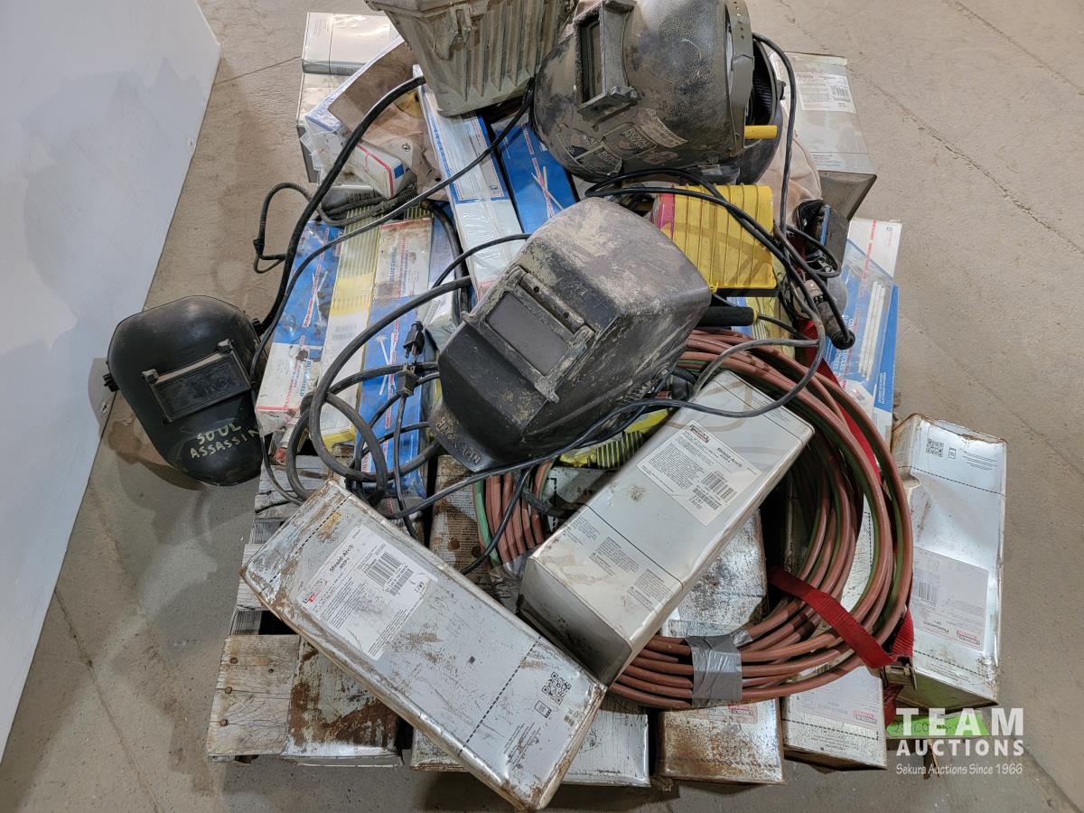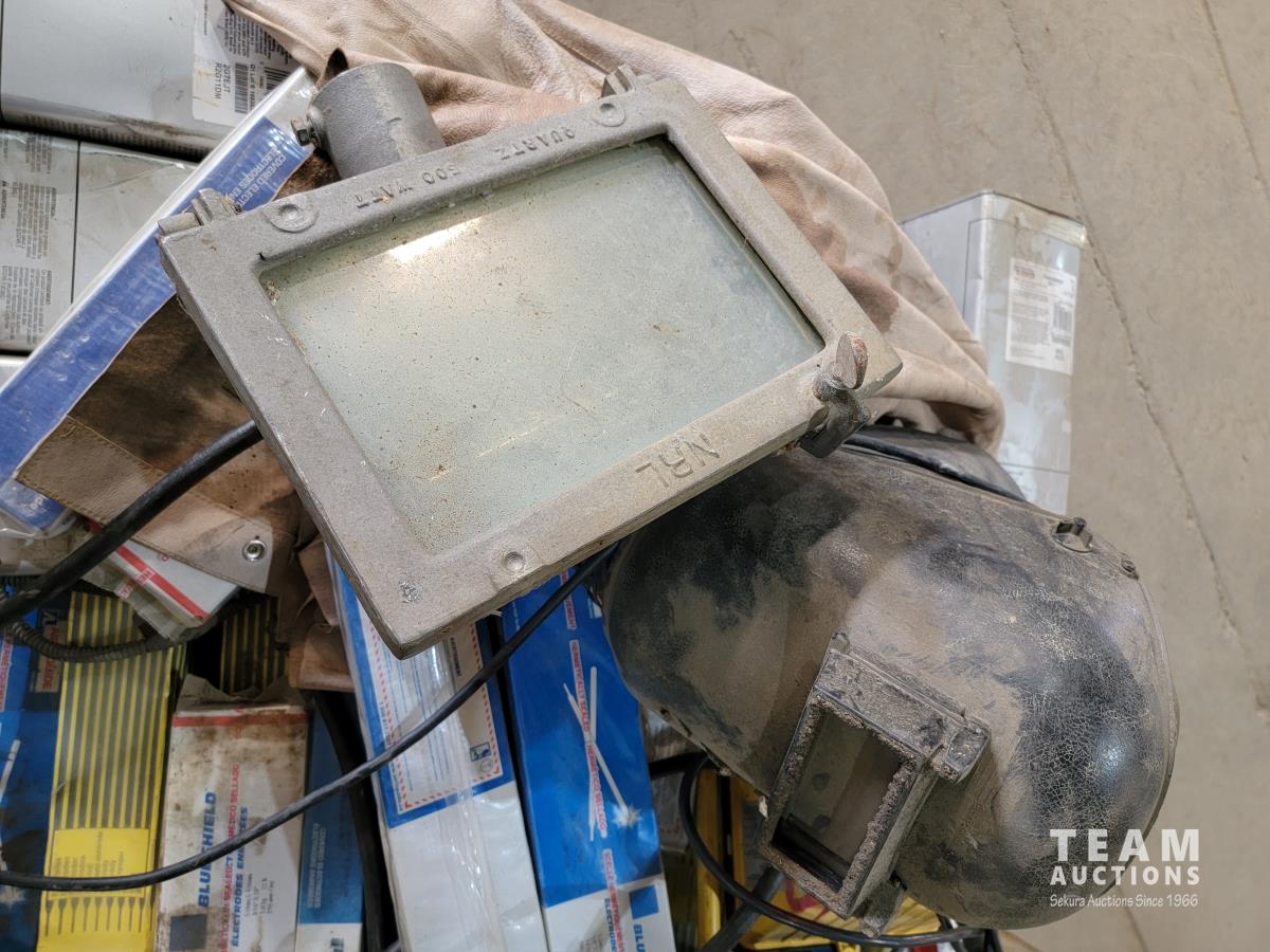 1425 Qty of Welding Rods, Welding Helmets, Work Lights and Jacket