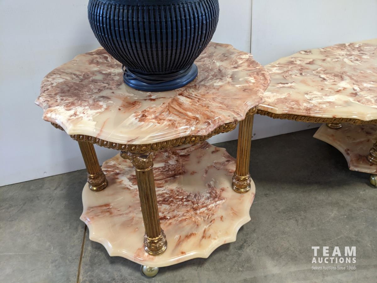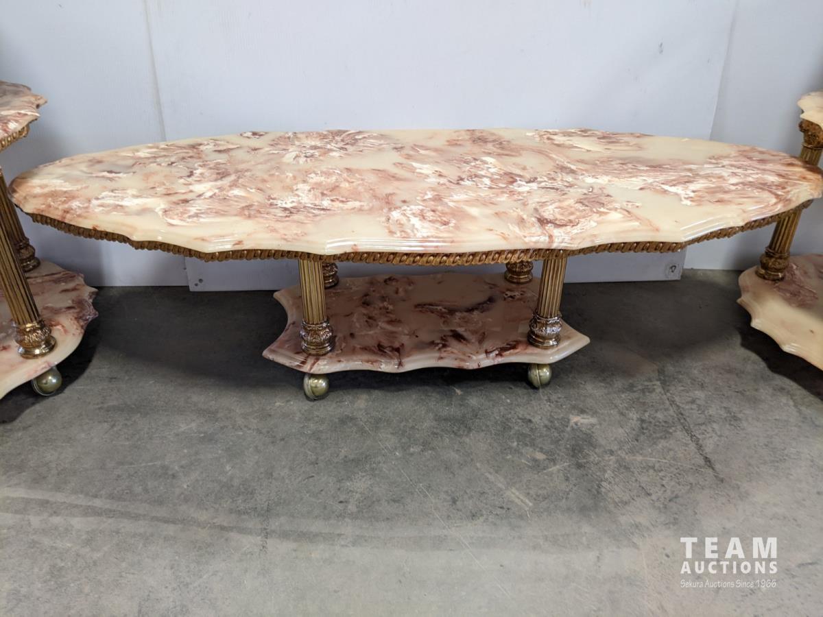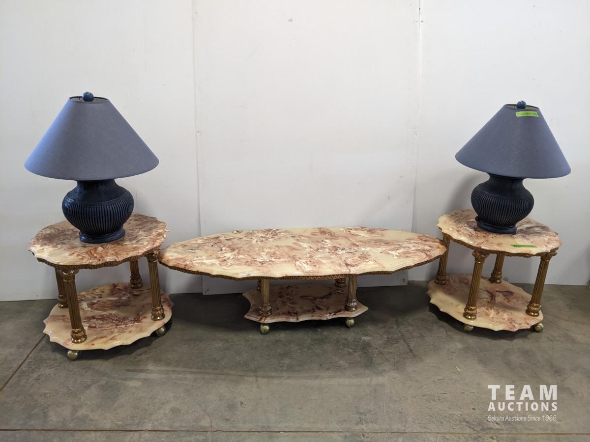 1076 Resin Coffee Table and (2) End Tables with (2) Side Lamps