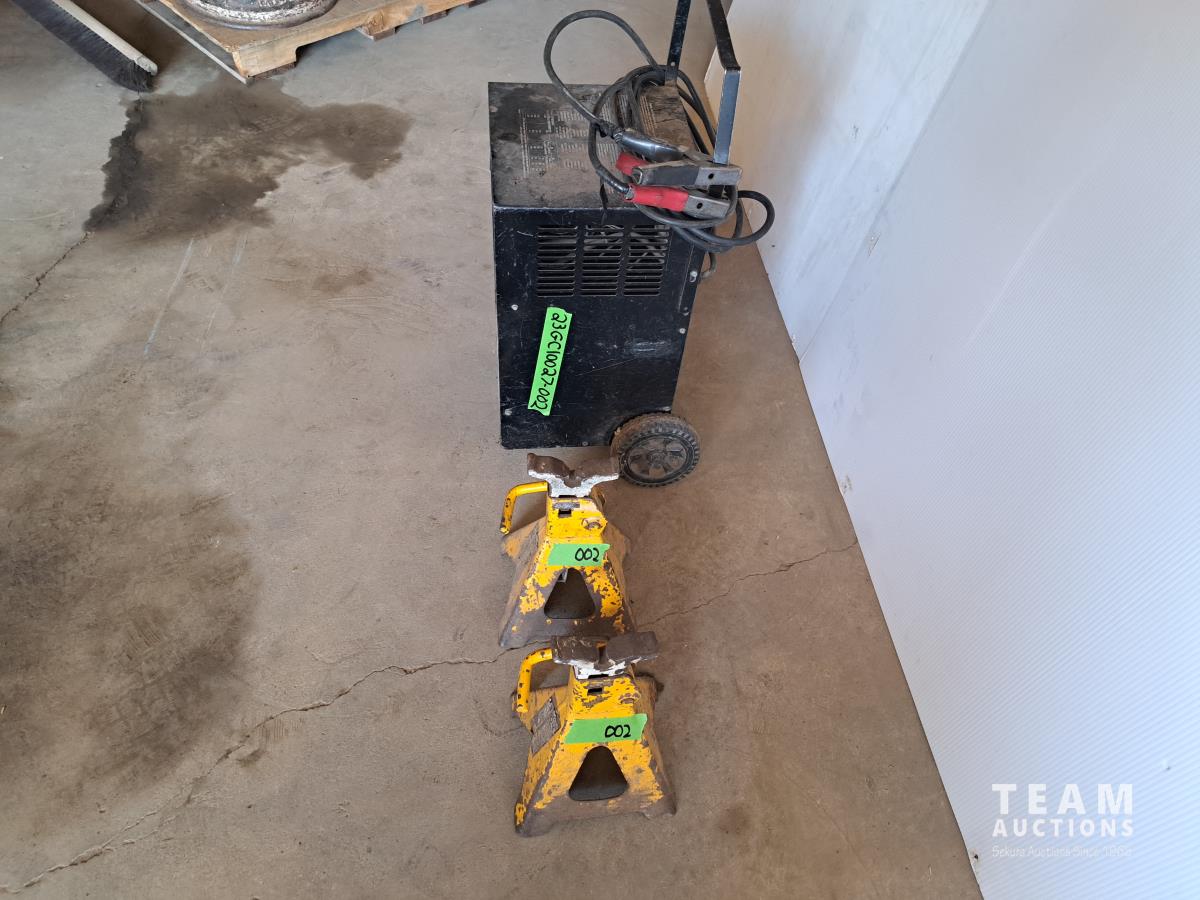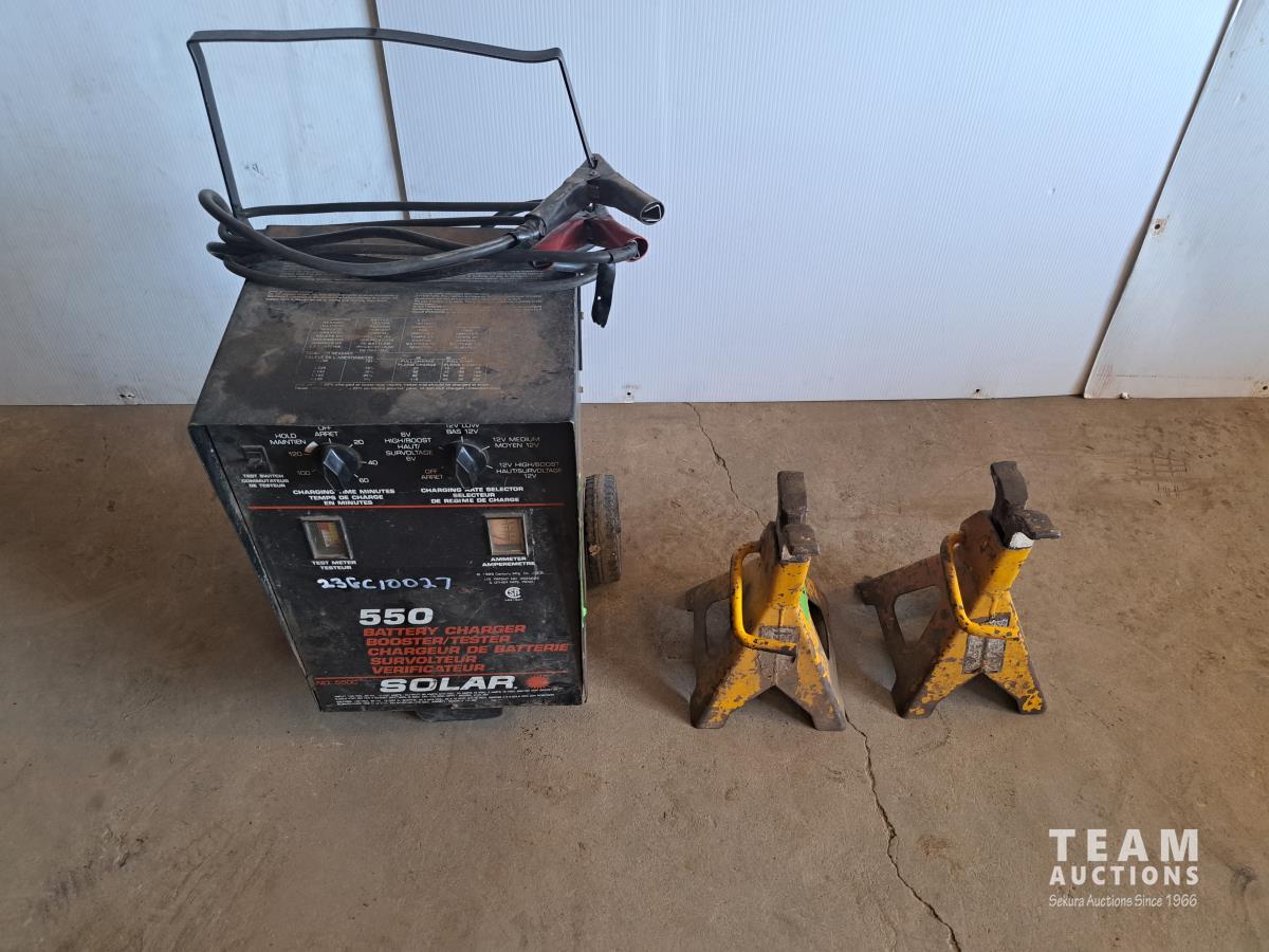 1422 Solar 550 12V Battery Charger and (2) Ton Jack Stands