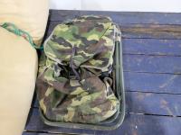 1845 Vintage Down Filled Wool Lined Sleeping Bag, Backpack with Chair and Folding Table