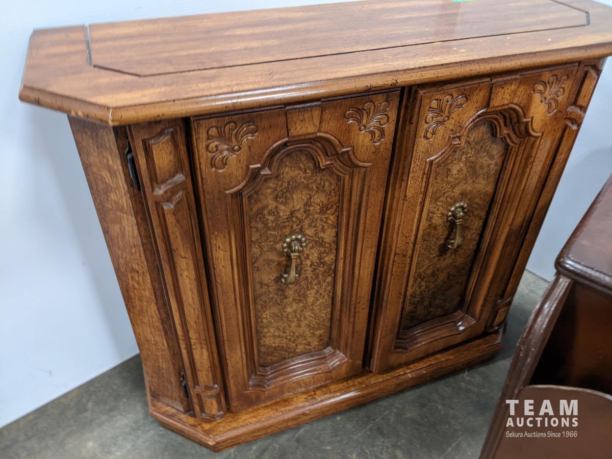 Cabinet 36 inch w x 12 inch d x 29 inch h, magazine table 27 inch w x 12 inch d x 22 inch h