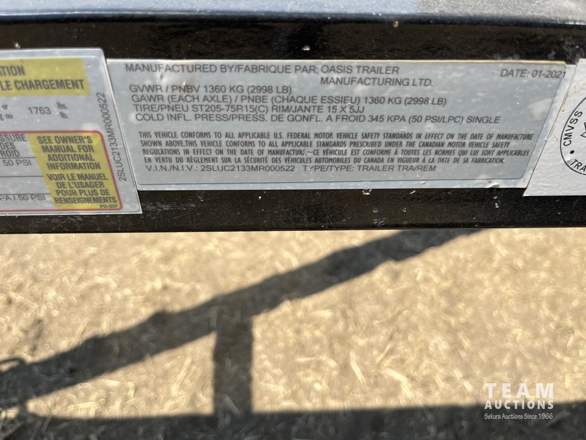 180A 2021 Oasis 12 Ft S/A Flat Deck Utility Trailer