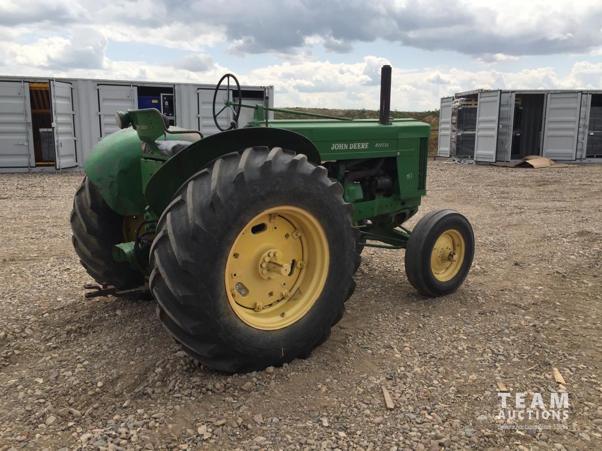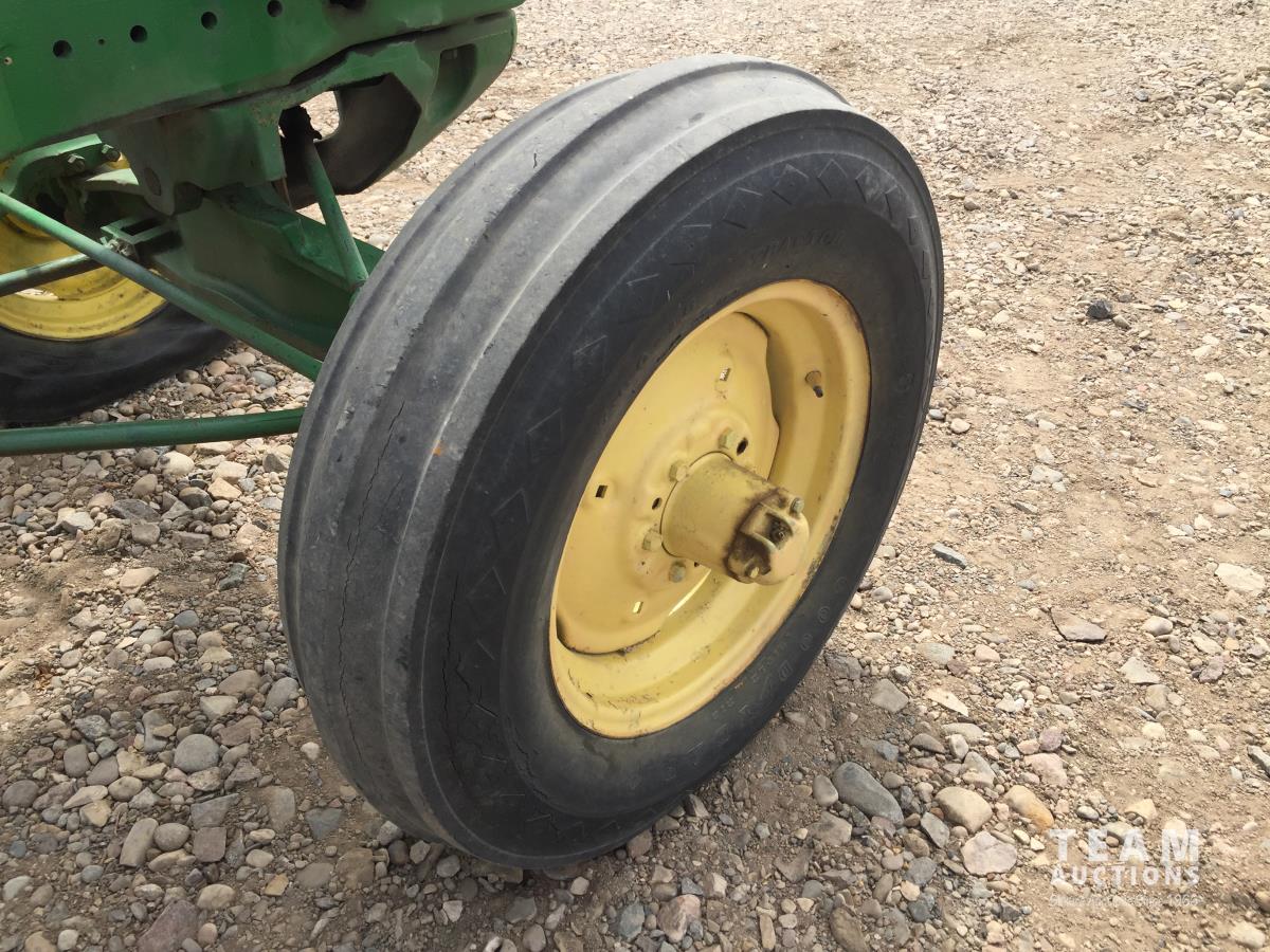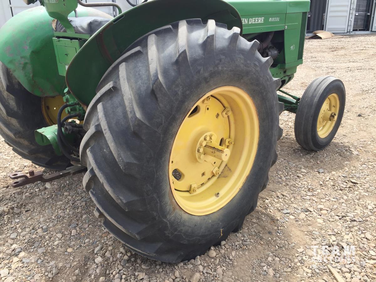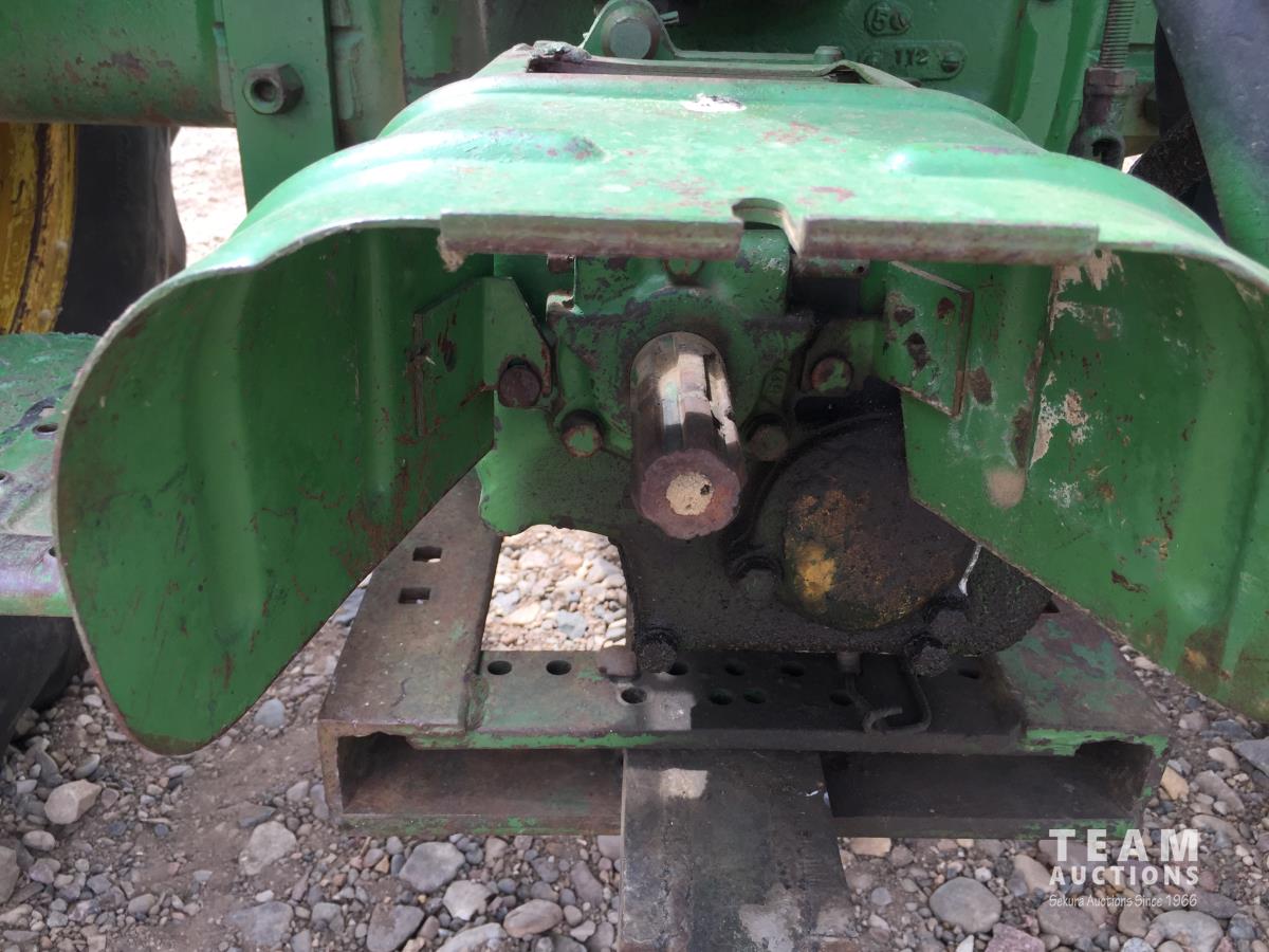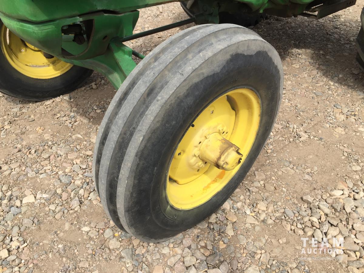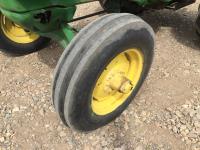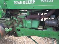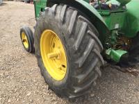 John Deere 6.2 L 2 cylinder 50 HP, diesel engine, 6 speed manual transmission, open station platform, 540 PTO, 1 rear hydraulic outlets, 6.00-16 front tires, 12-38 rear tires