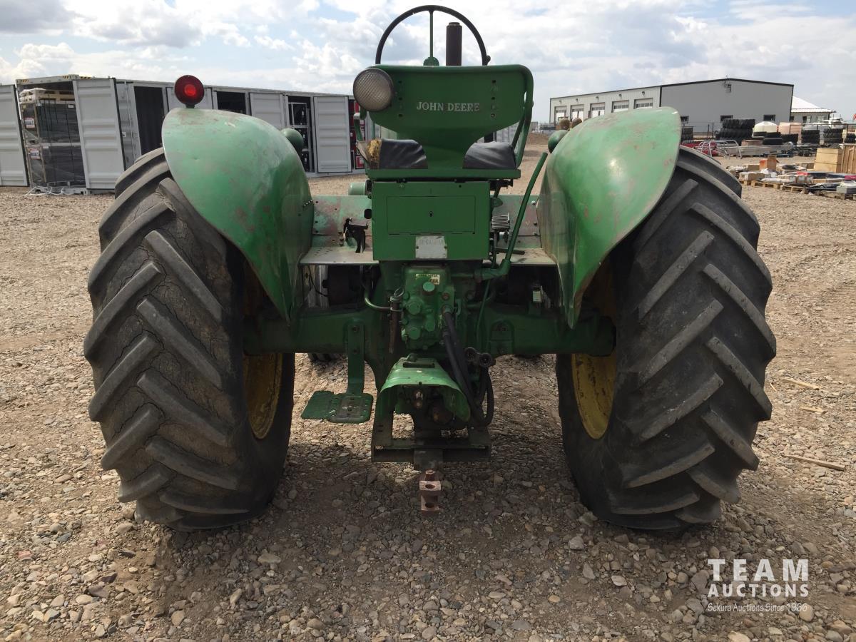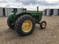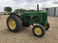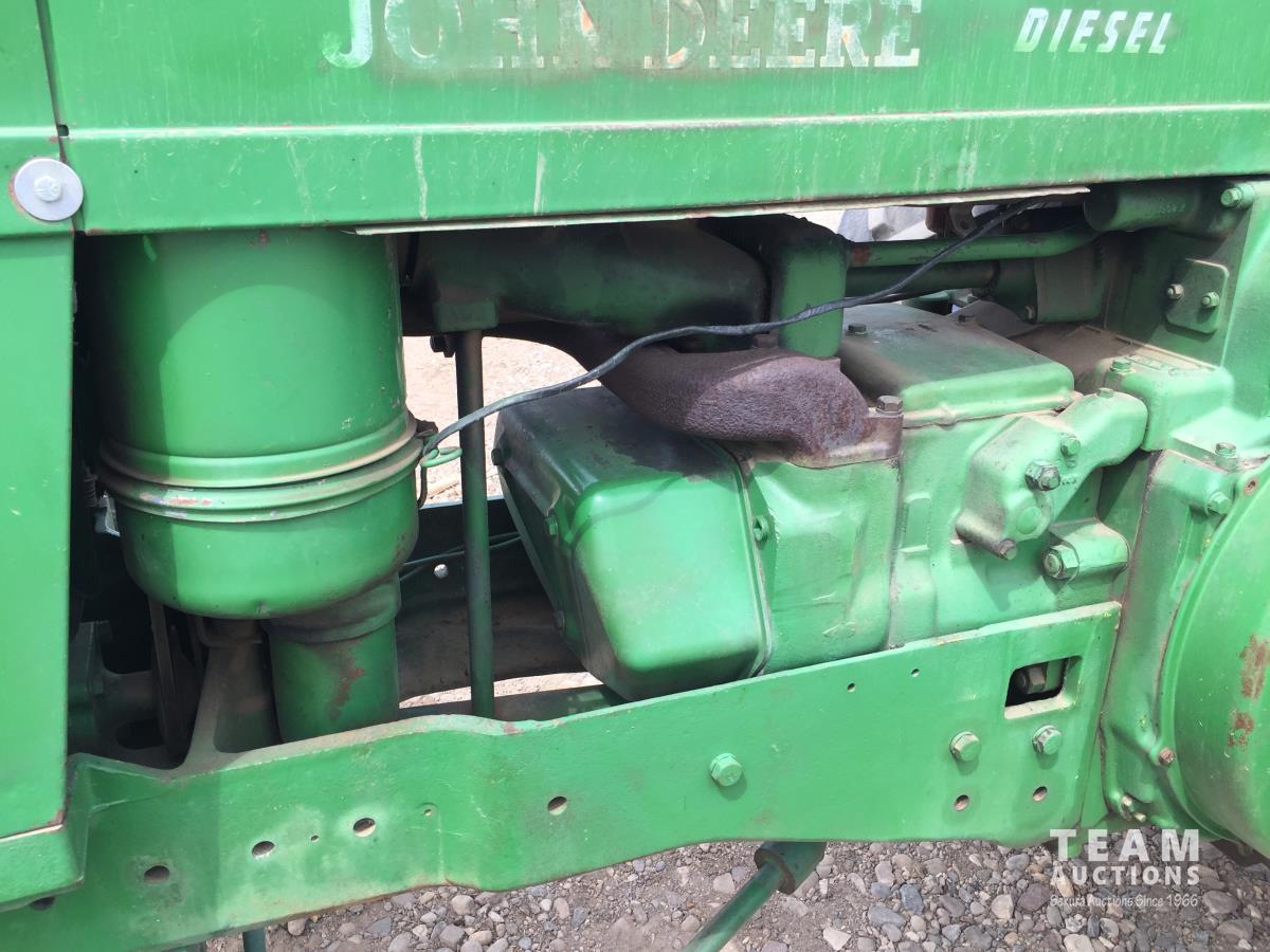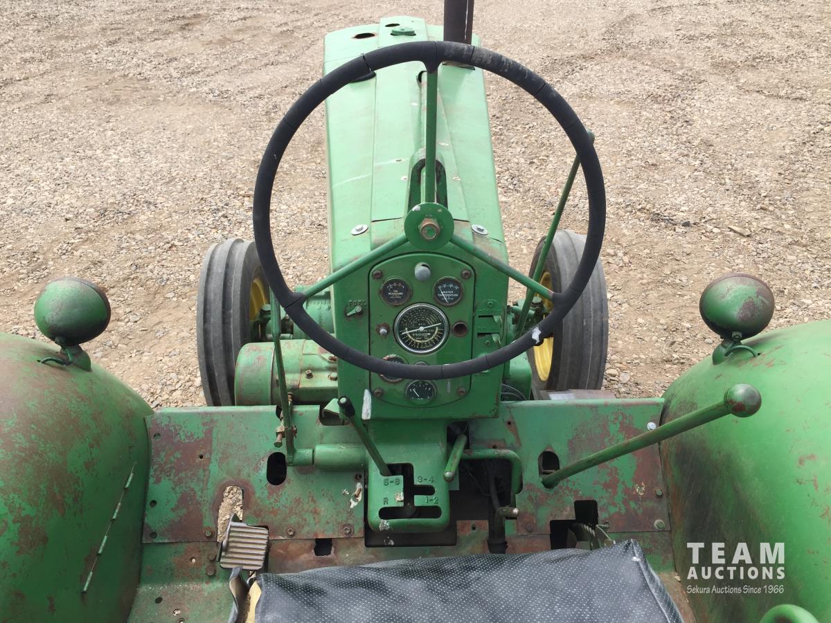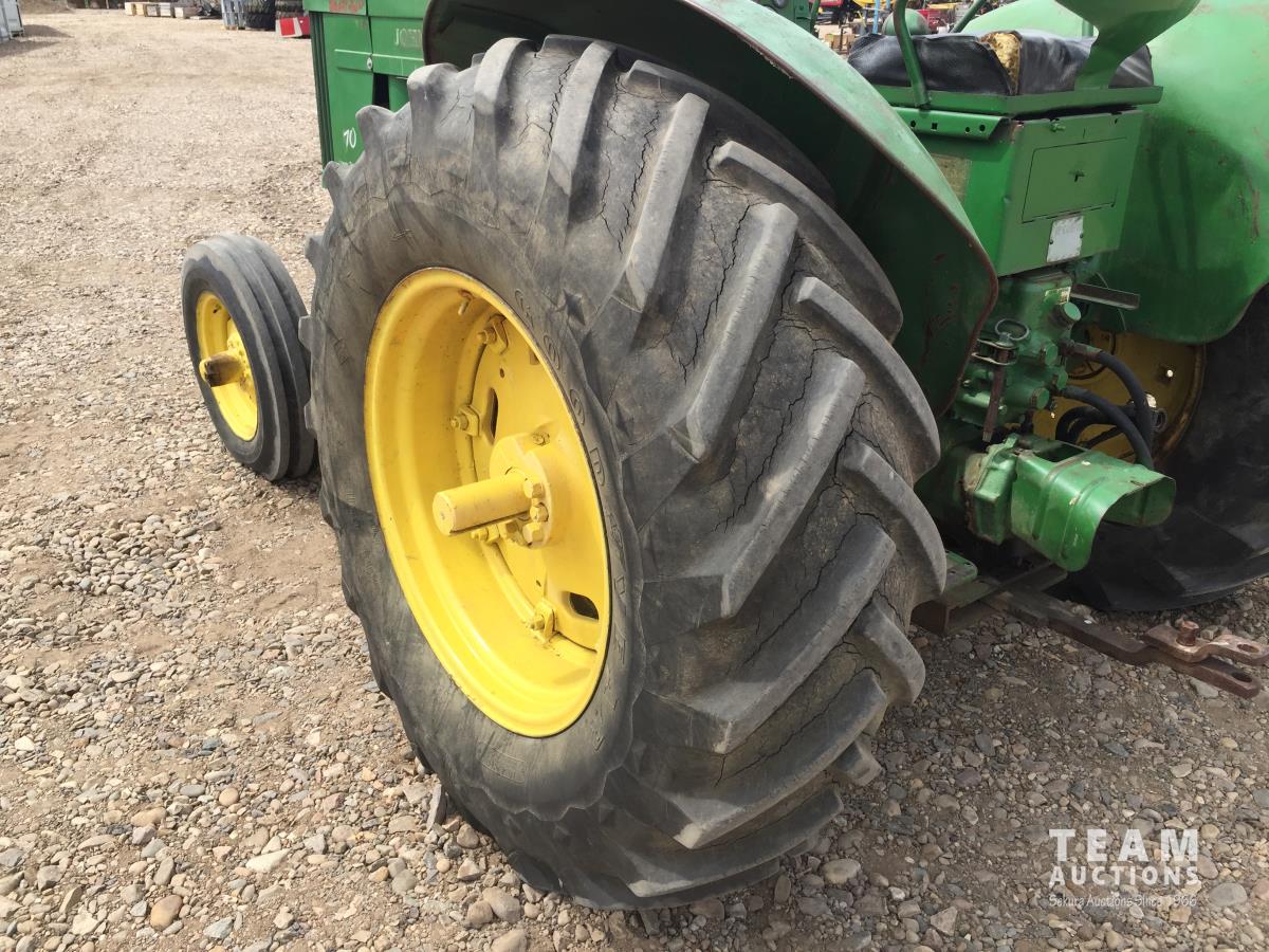 John Deere 6.2 L 2 cylinder 50 HP, diesel engine, 6 speed manual transmission, open station platform, 540 PTO, 1 rear hydraulic outlets, 6.00-16 front tires, 12-38 rear tires