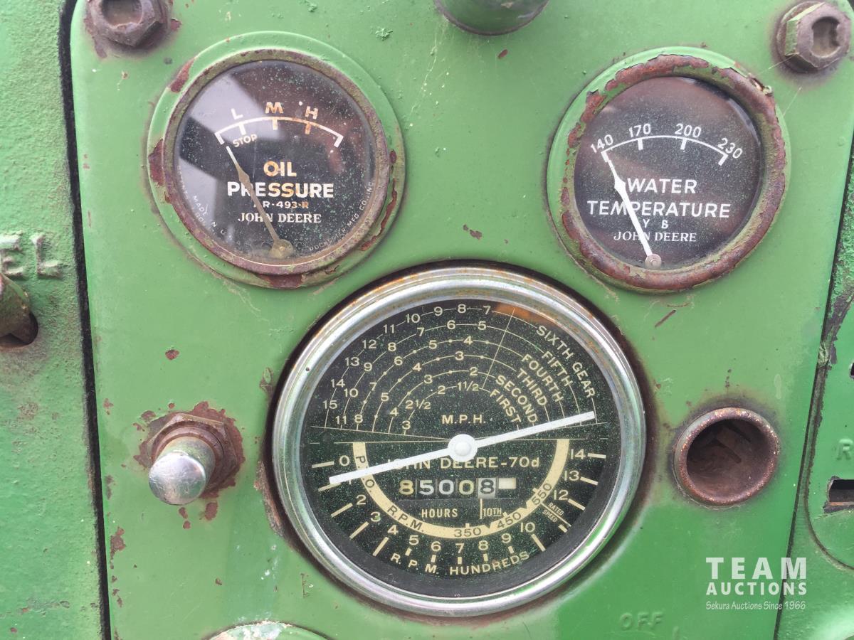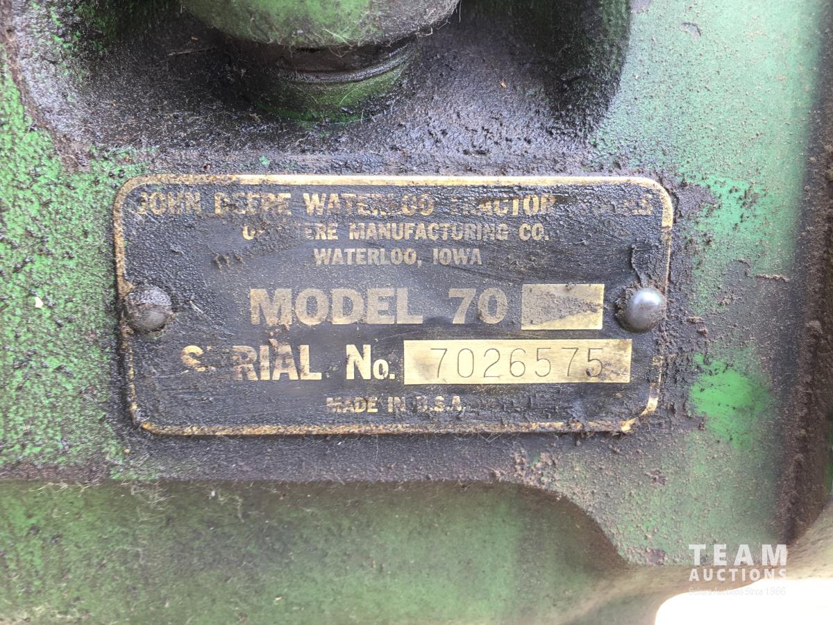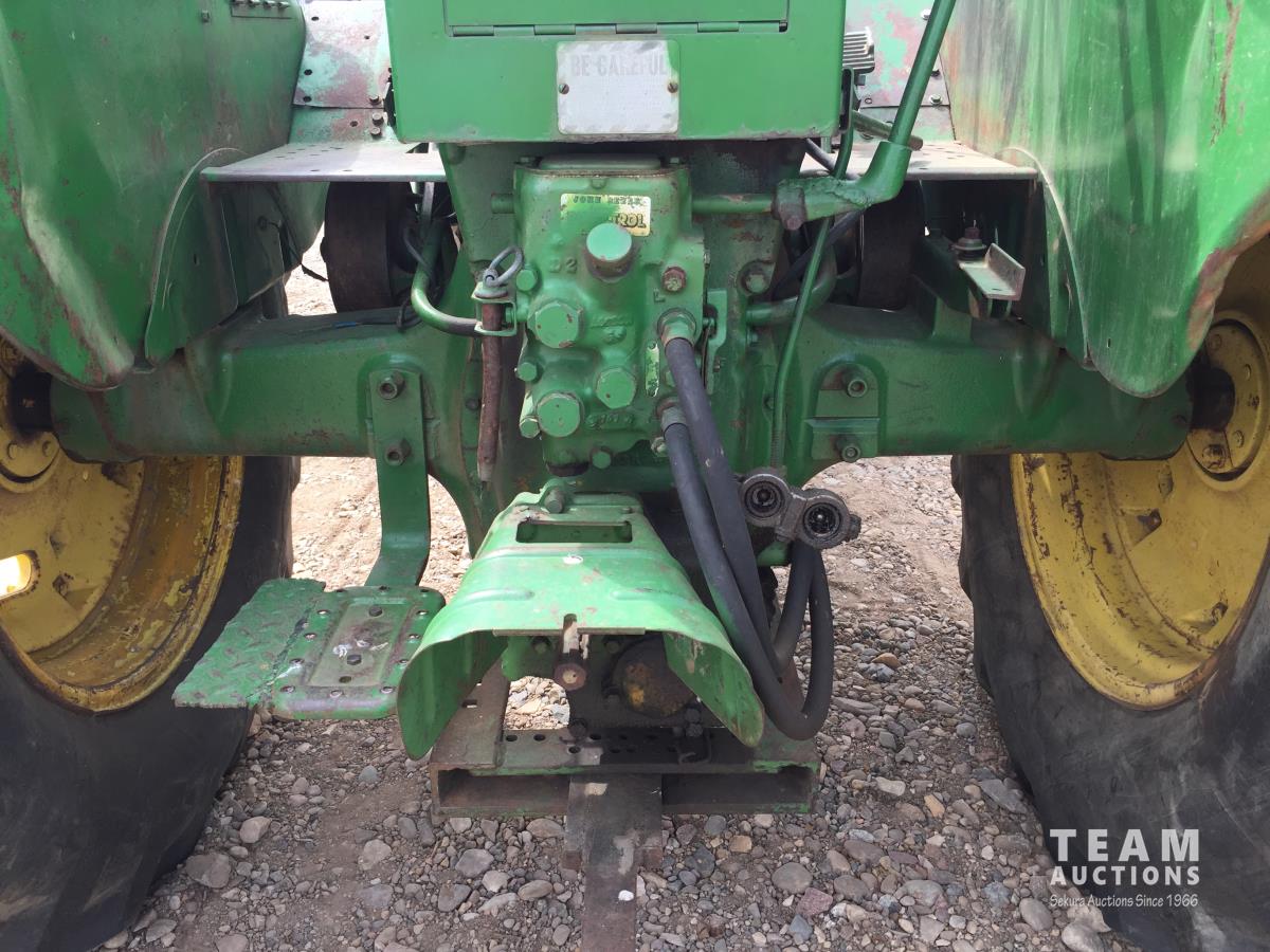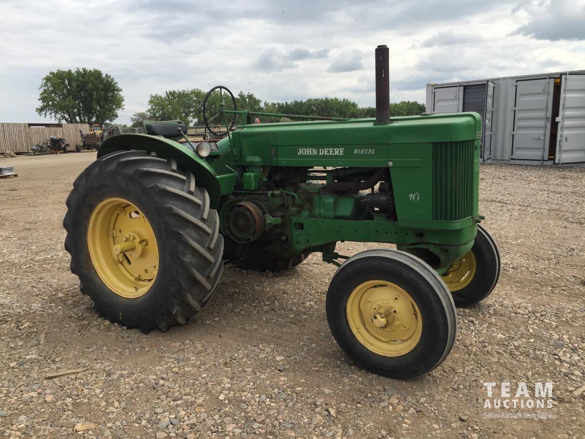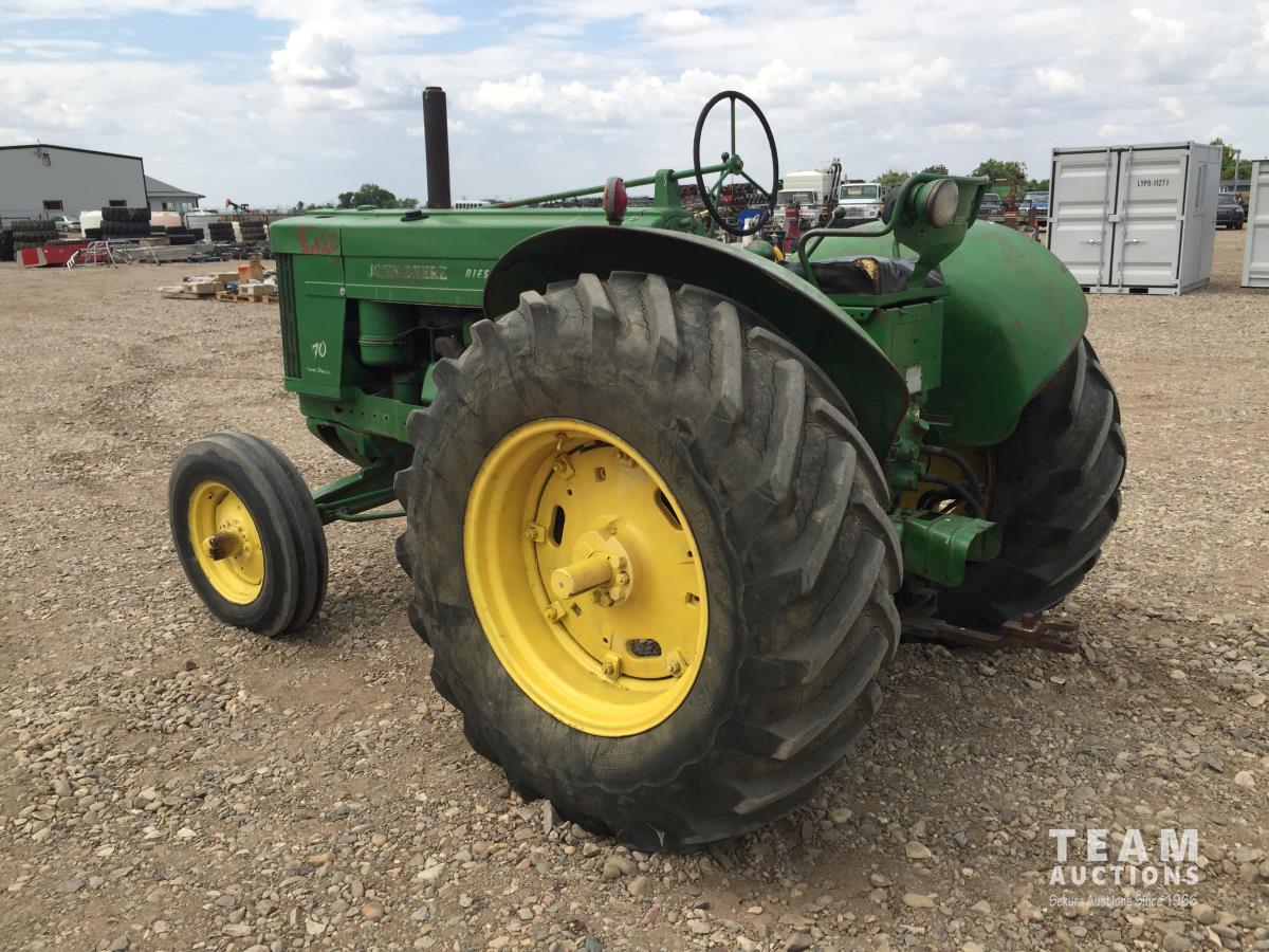 John Deere 6.2 L 2 cylinder 50 HP, diesel engine, 6 speed manual transmission, open station platform, 540 PTO, 1 rear hydraulic outlets, 6.00-16 front tires, 12-38 rear tires