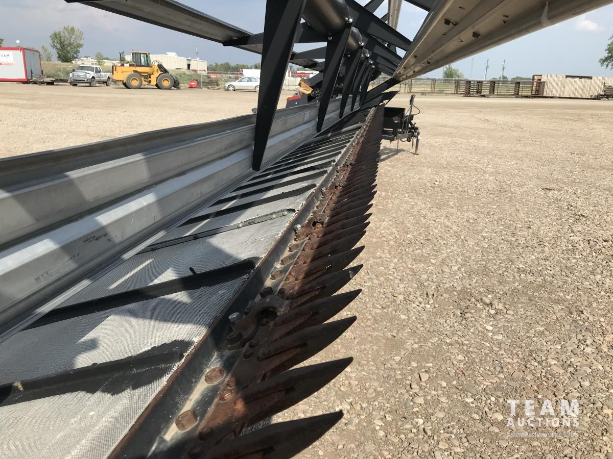 2001 MacDon 30 ft center delivery rigid draper header, batt reel, 1000 PTO, 9.5L-14