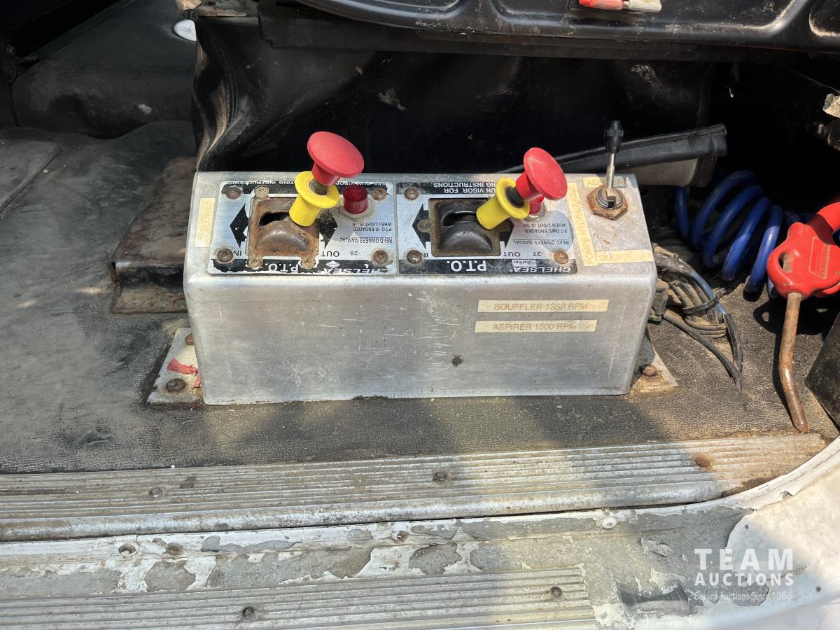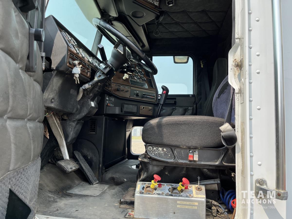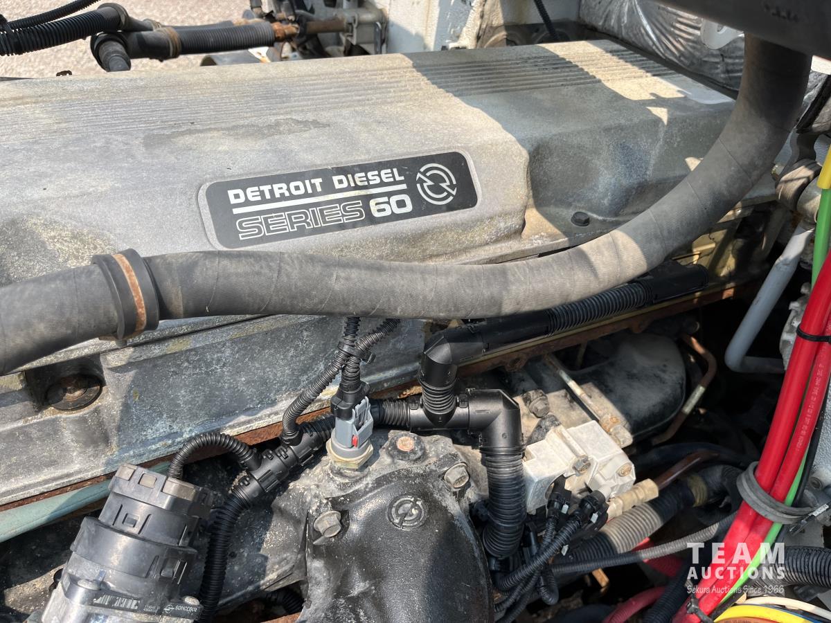 Detroit DDC60 14.0 L 470 HP engine, engine brake, Eaton Fuller 13 speed manual transmission, (2) Chelsea PTO's, blower, , air ride suspension, 18,000 lb front axle, 40,000 lb rear axles, diff lock, 4.11 ratio, 247 inch WB, aluminum front wheels, 11R24.5 front tires, 11R22.5 rear tires