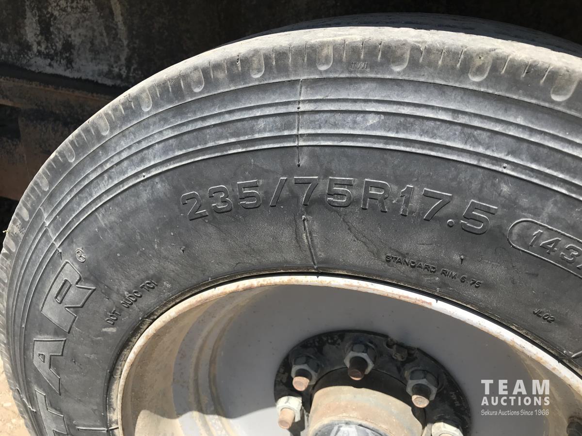 97 inch wide deck, wood deck, stake pockets, rub rails, solar charged battery w/ hydraulic landing gear, spring suspension, 235/75R17.5 tires