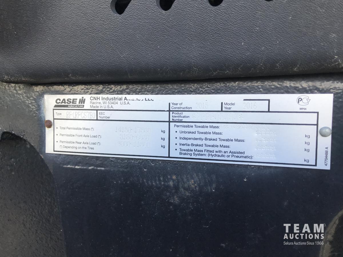 8.7 6 cylinder 280 HP, diesel engine, 235 PTO HP, 19 speed power shift transmission, 44 GPM hydraulic pump, cab, left hand reverser, rear differential lock, Integrated GPS, 372 Case, 10 front weights, 1000 PTO, 4 rear hydraulic outlets, 2 rear auxillary hydraulic outlets, 480/70R34 front tires, 710/70R42 rear tires
