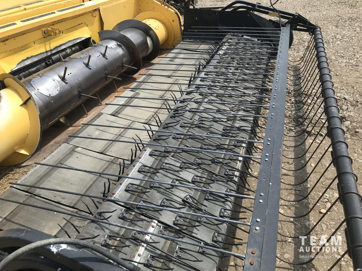 2006 New Holland 76C 14 ft pick-up header, variable speed reel, auto header height, fore & aft, reverser, lateral tilt, rock trap, yield & moisture, chaff spreader, chopper, grain tank extensions, A/C, radio, upgraded stereo, air ride seat, buddy seat, 900/60R32 front tires, 600/65R28 rear tires