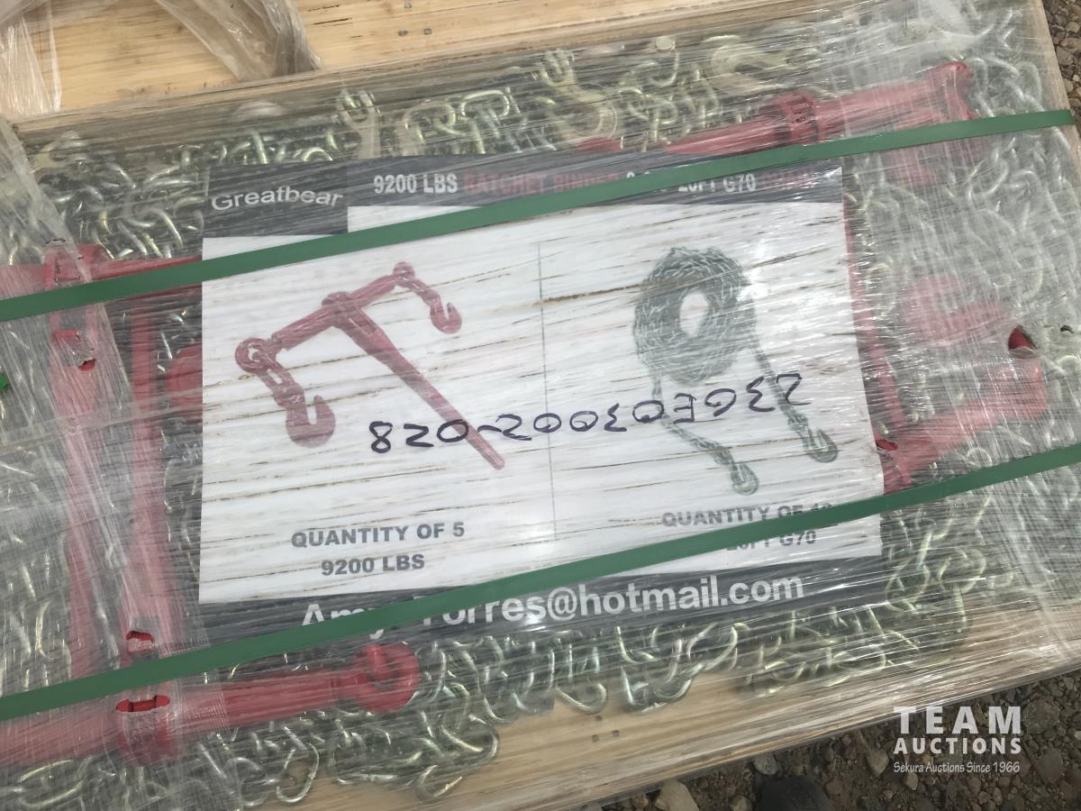 48 Greatbear (5) 9200 lb Ratchet Binders W/ (10) 5/16 20 Ft G70 Chain (Unused)