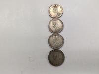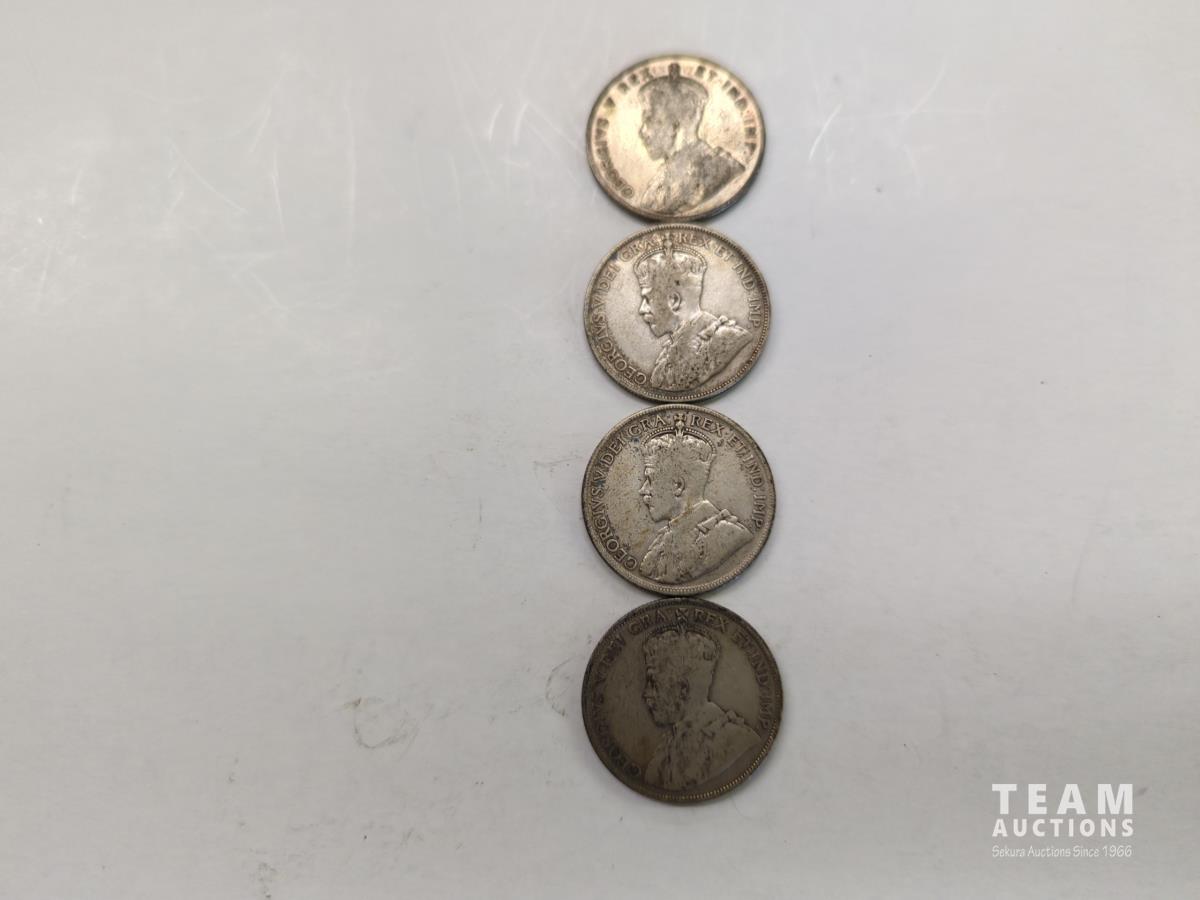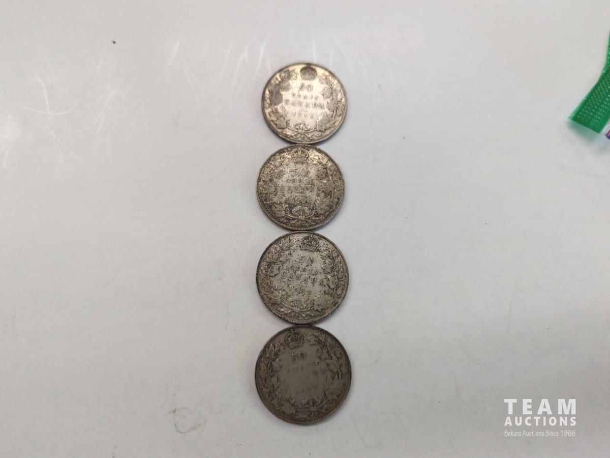 Set of four 50 cent Canadian coins. 1911, 1914, 1931, 1932