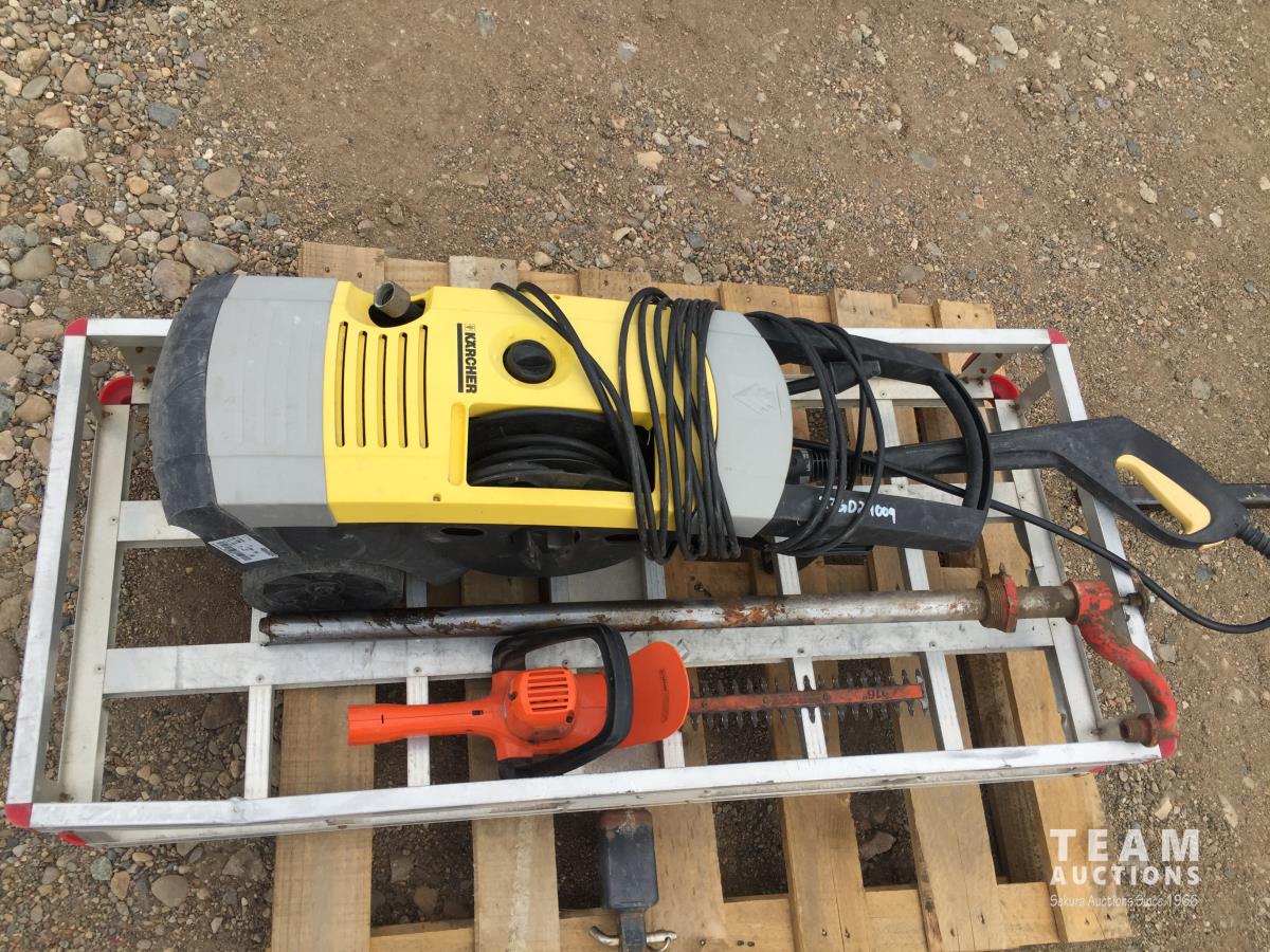 1448 Karcher Pressure Washer w/ Hitch Rack & Hedge Trimmer