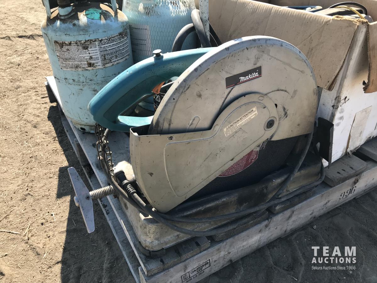 1445 Makita Chop Saw w/ Propane Tanks & Misc Parts/Tools