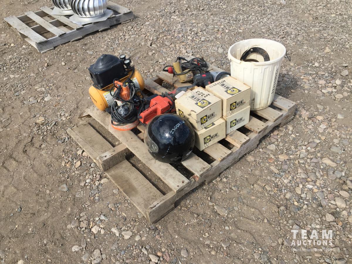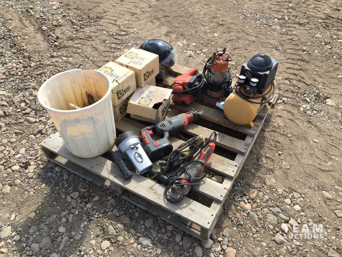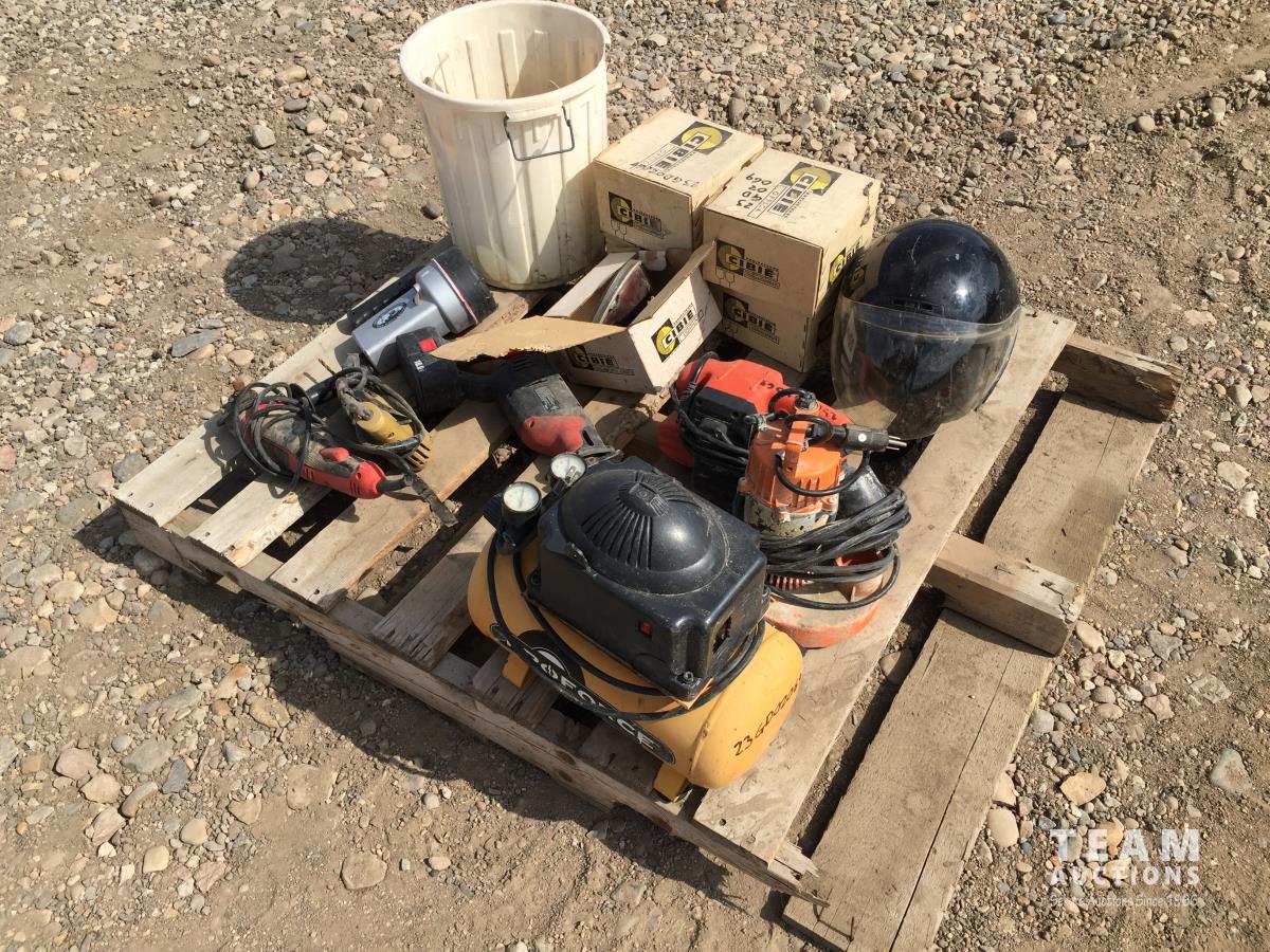 1634 Qty of Misc Tools w/ Air Compressor and Headlights