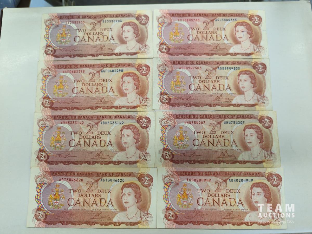 1946 (8) 1974 Royal Canadian Mint Two Dollar Bills