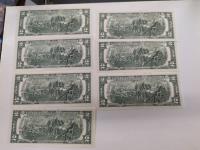 1962 (7) 1995 Federal Reserve Note Two Dollar Bills