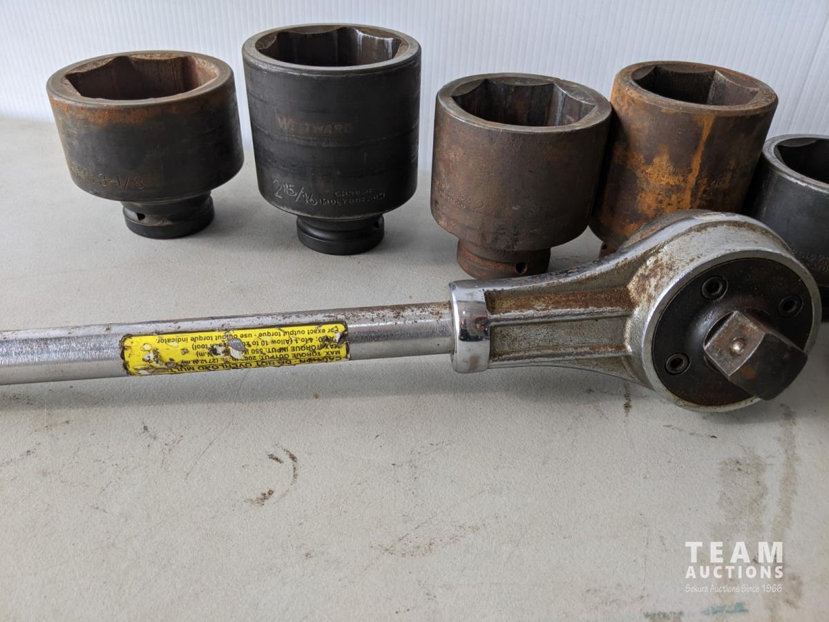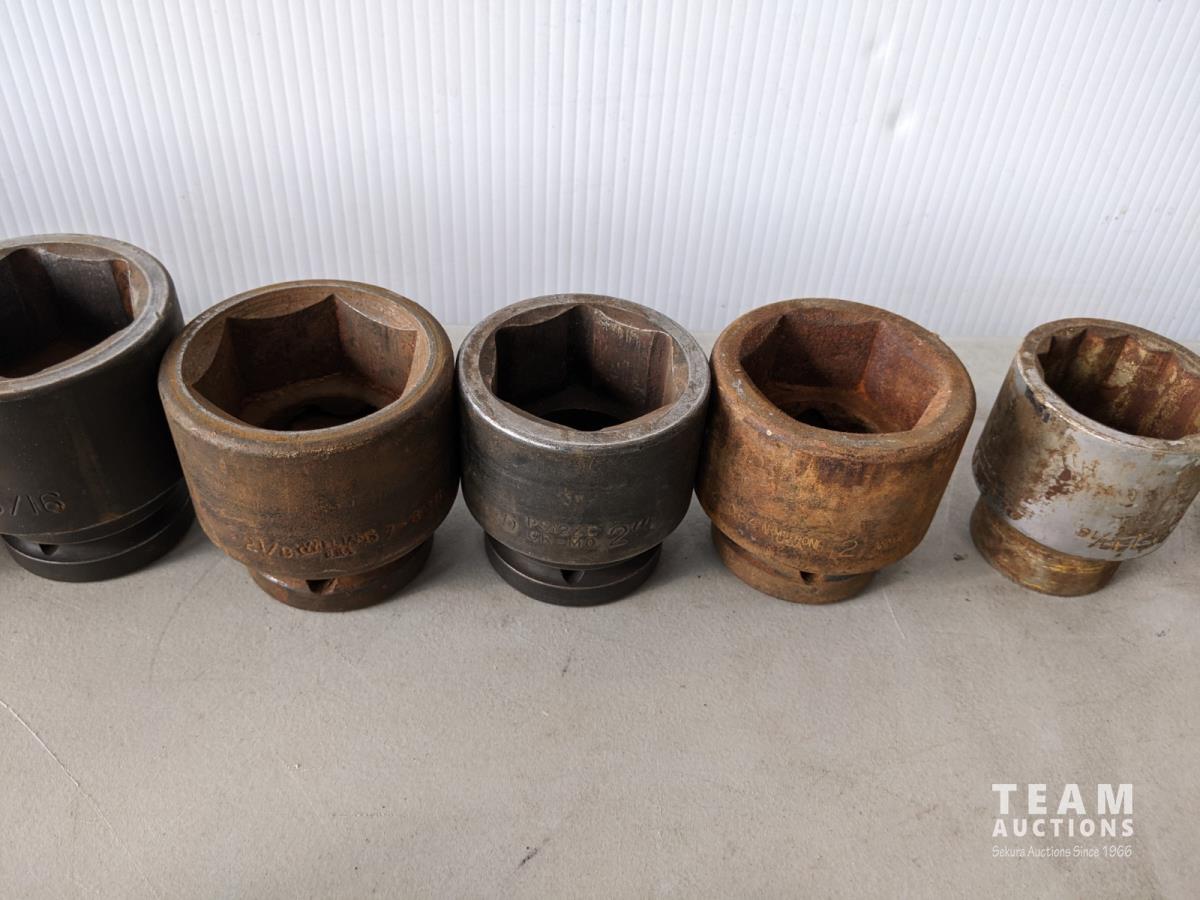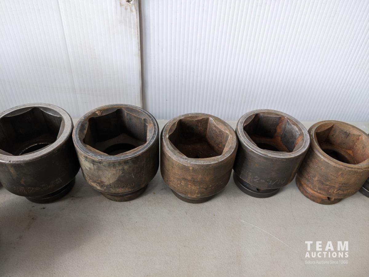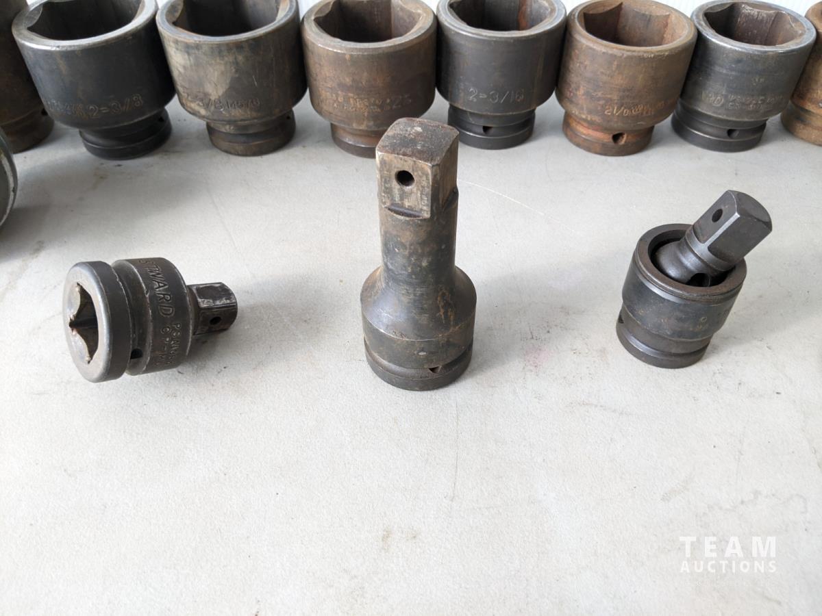 (12) 1 inch drive sockets: 3-1/8 inch to 1-13/16 inch, (1) 3/4 inch drive to 1 inch drive adaptor, 2 inch extension (1 inch drive), 3/4 inch drive impact universal joint