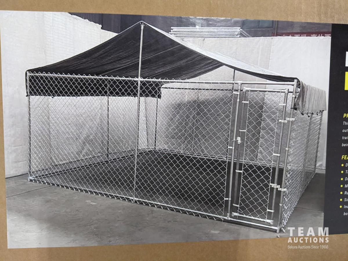 1689 13 Ft X 13 Ft Chain Link Dog Kennel and Roof Cover (Unused)