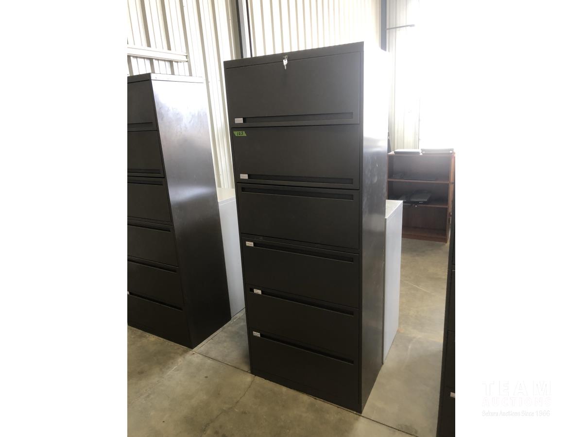 (1) Six drawer: 30 inch l x 18 inch d x 76.5 inch h, (1) three drawer: 36 inch l x 18 inch d x 40 inch h