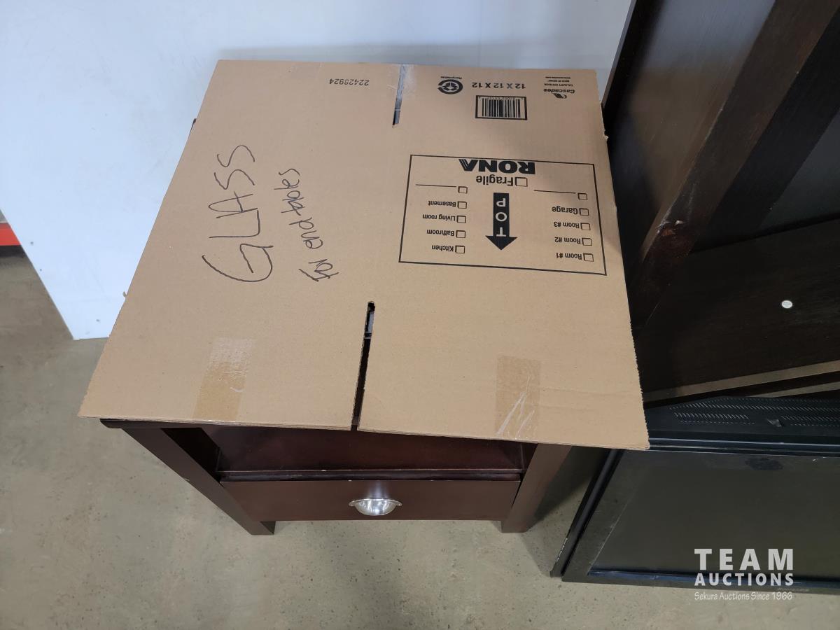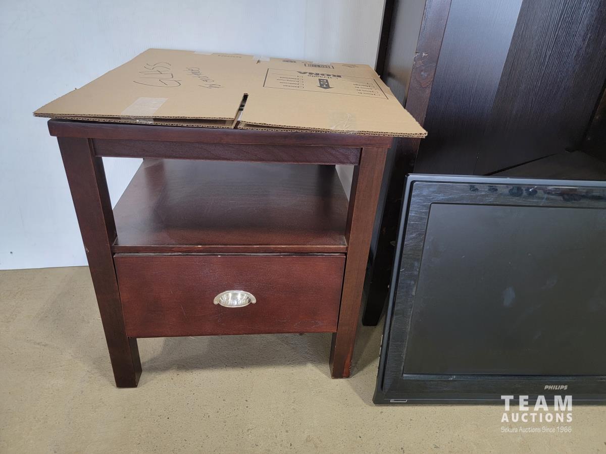 1568 (2) Solid Wood End Tables, Wood Shelf and 34 Inch TV