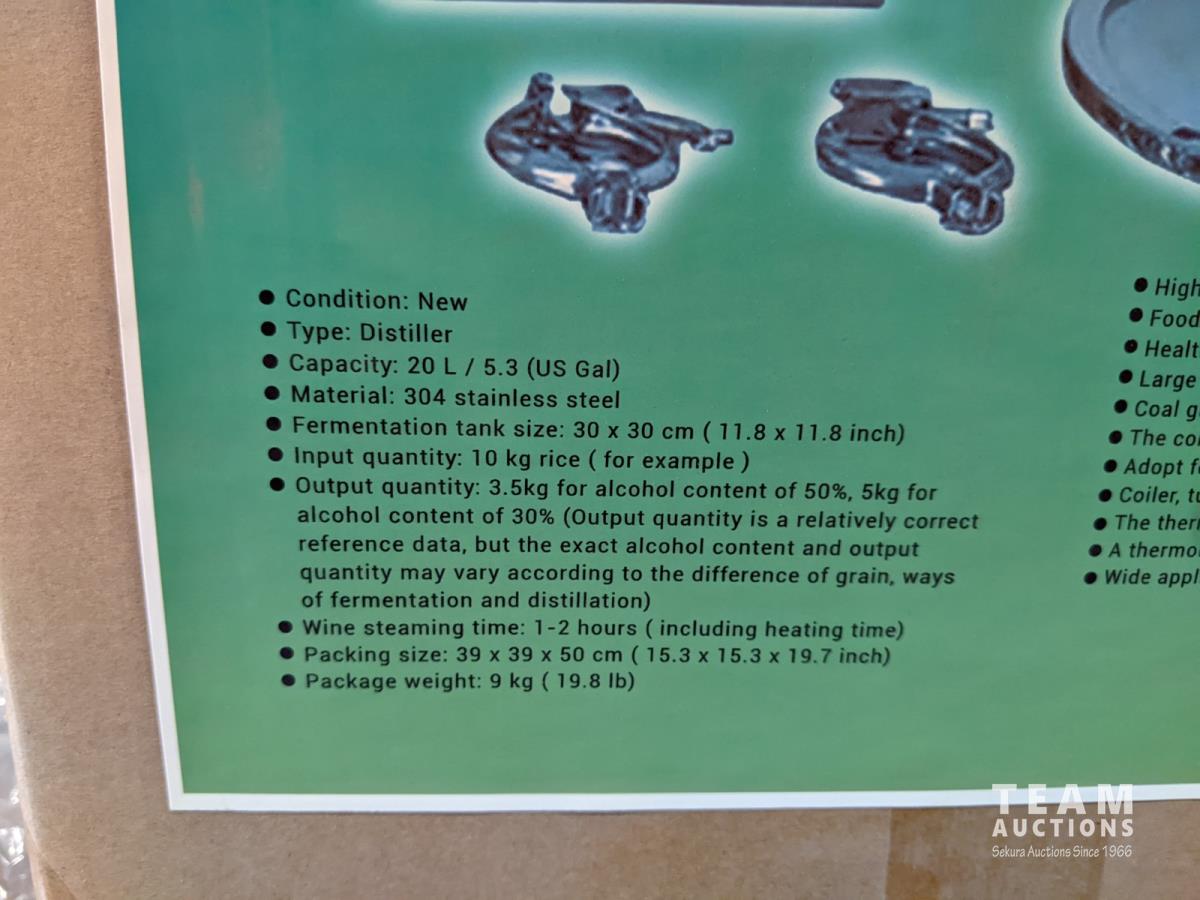 1682 20 L Stainless Alcohol Distiller/Brew Machine (Unused)
