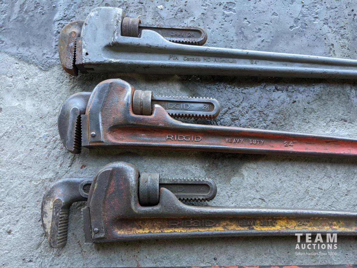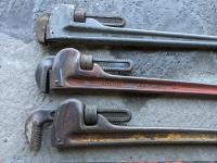 (2) Ridgid pipe wrenches and (1) PTA Aluminum pipe wrench