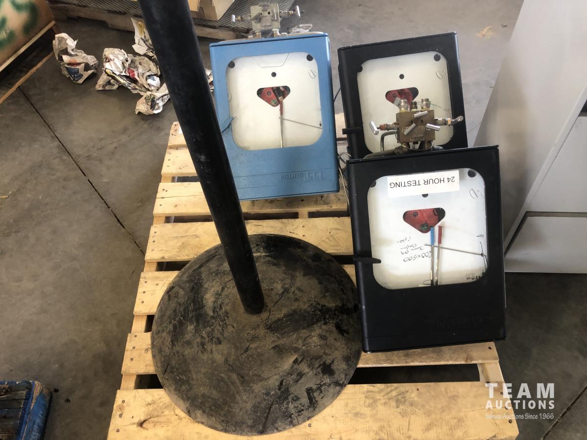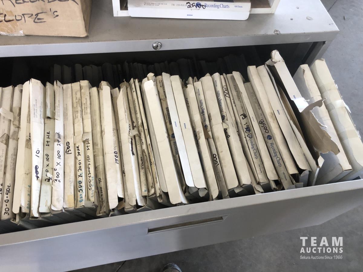 2498 (3) Barton Meters, Metal Stand and Three Drawer Filing Cabinet with Qty of Recording Charts