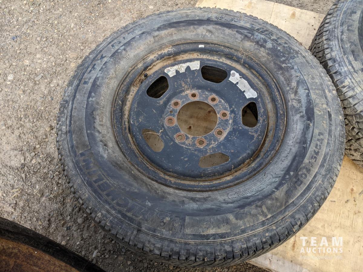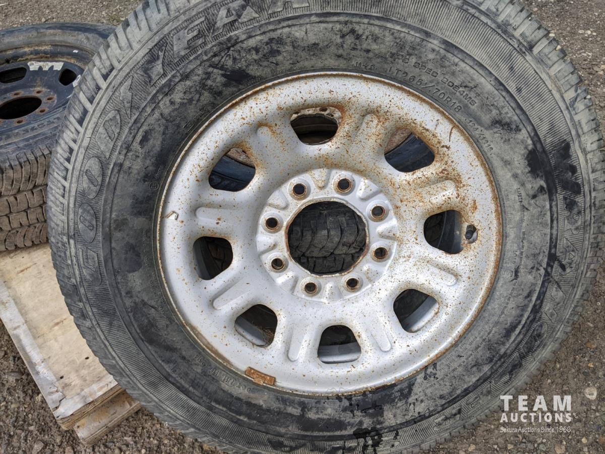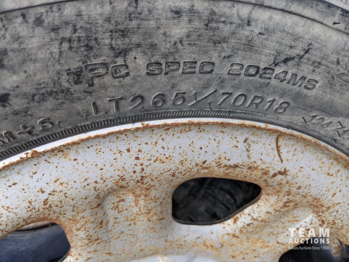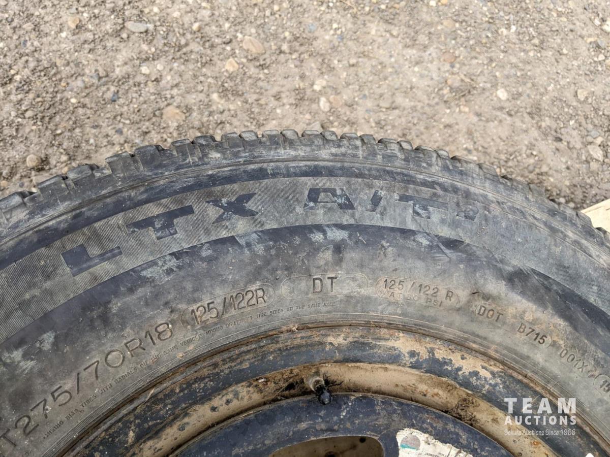 (1) Toyo M-55 LT275/70R18 (1) Michelin LT275/70R18 (1) Goodyear Wrangler LT265/70R18 (1) Michelin LT265/70R18 (has cracks in sidewall, see photos)