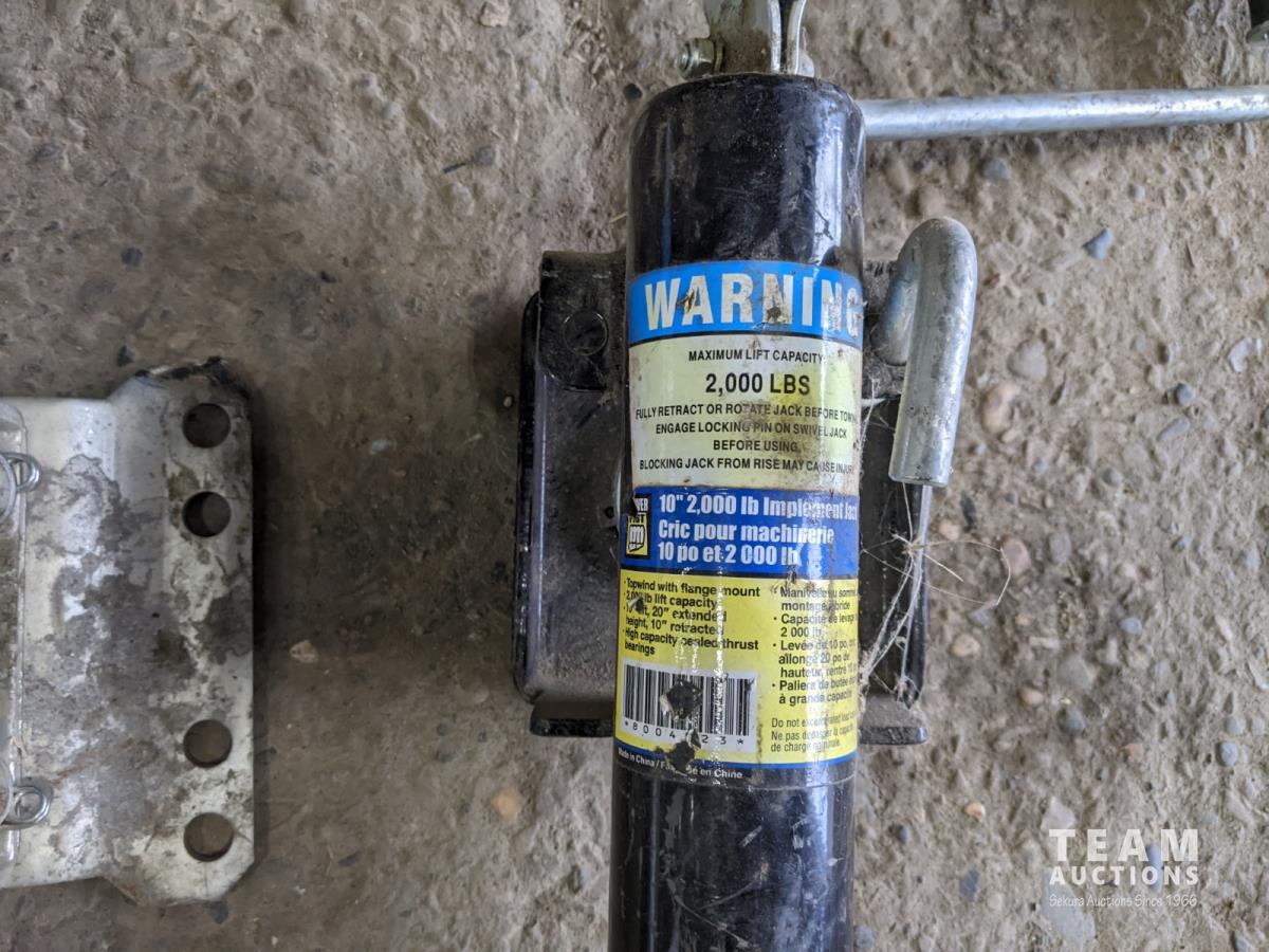 (2) 2,000 lb implement jacks, (1) 5,000 lb trailer jack and (1) auto bolt-on swivel trailer jack