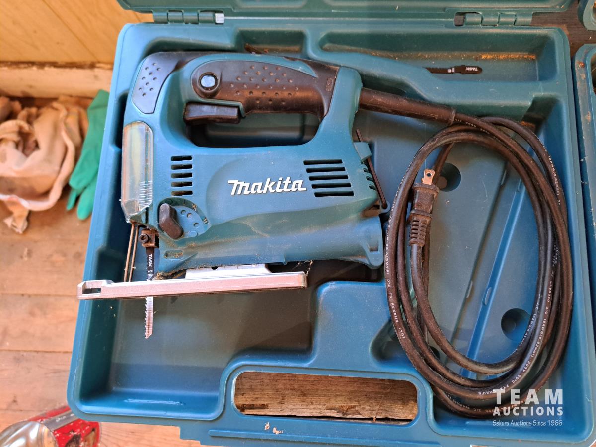 Makita jig saw and case, Makita drill and case