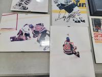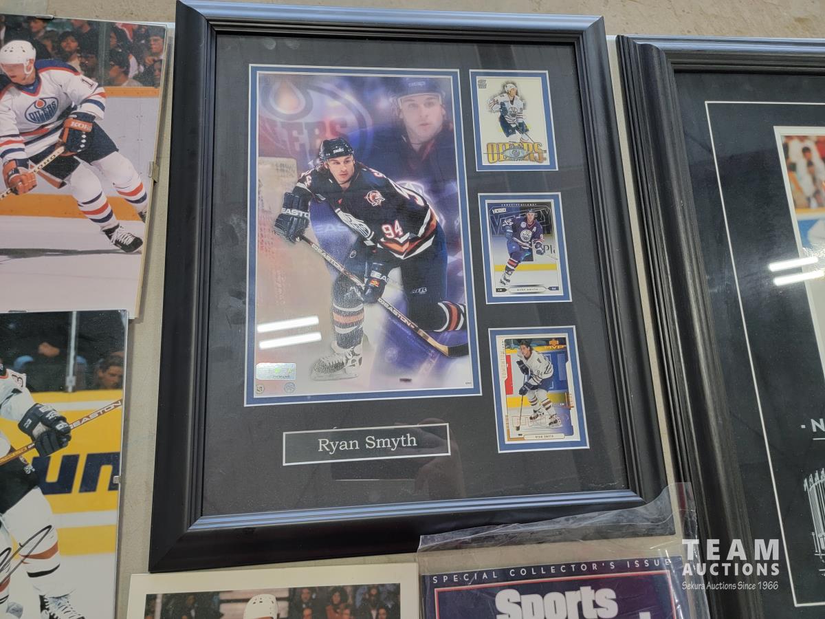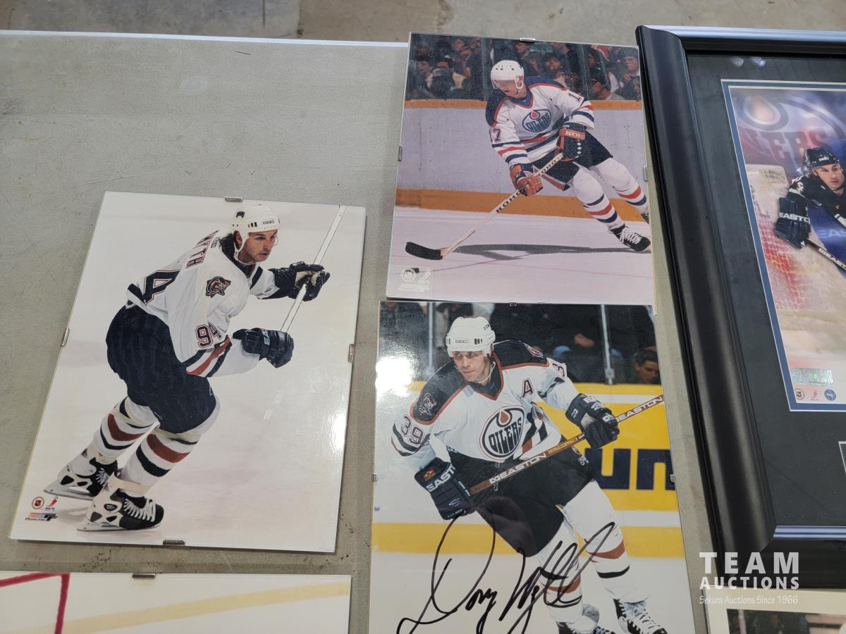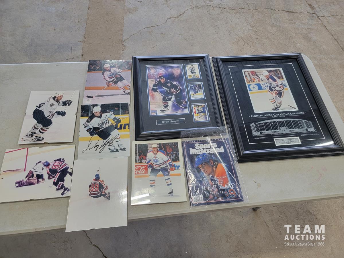Gretzky against Philly 50th goal in 39 games, Gretzky against buffalo 77th goal of the year, Ryan Smith collage, Gretzky sports illustrated magazine, signed Doug Weight, Signed Esa Tikkanen, framed Smyth photo and framed Yari Kurri