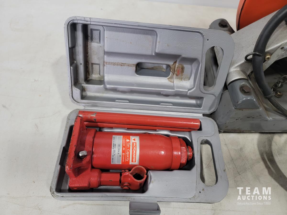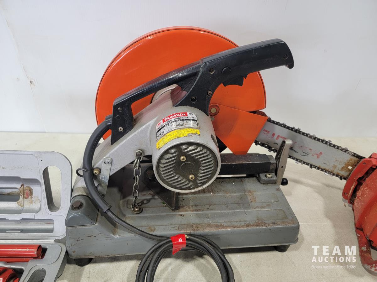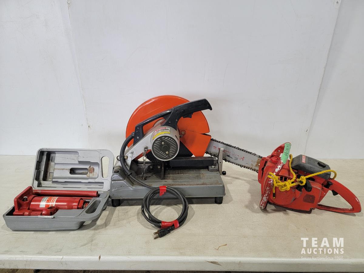 1635 Makita 355mm Portable Cut-off, Homelite Chain Saw and Motormaster 6 Ton Bottle Jack