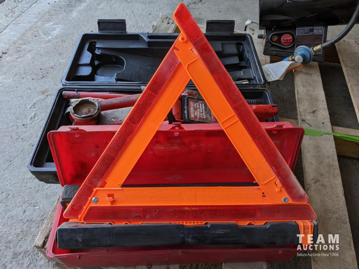 1203 Motomaster 2-1/4 Ton Floor Jack and Grote Road Flares