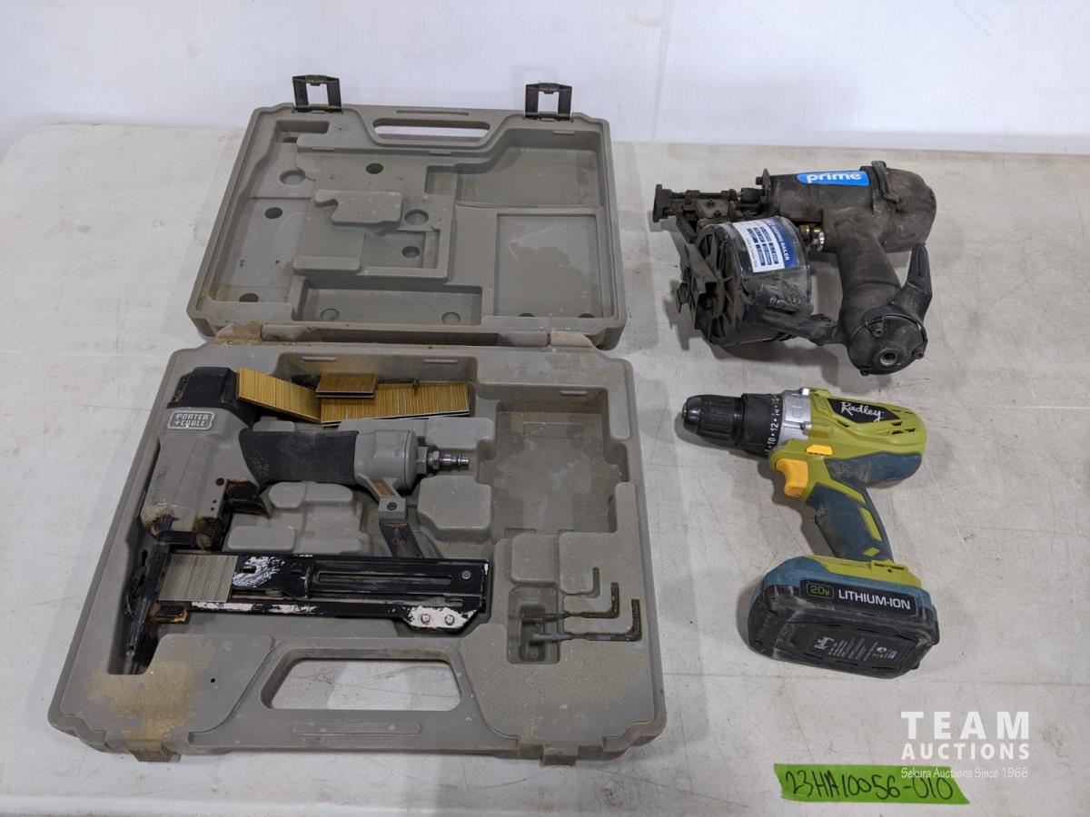 1545 Prime Roofing Nailer, Radley 20V Drill and Porter Cable 1/4 Inch Narrow Crown Nailer