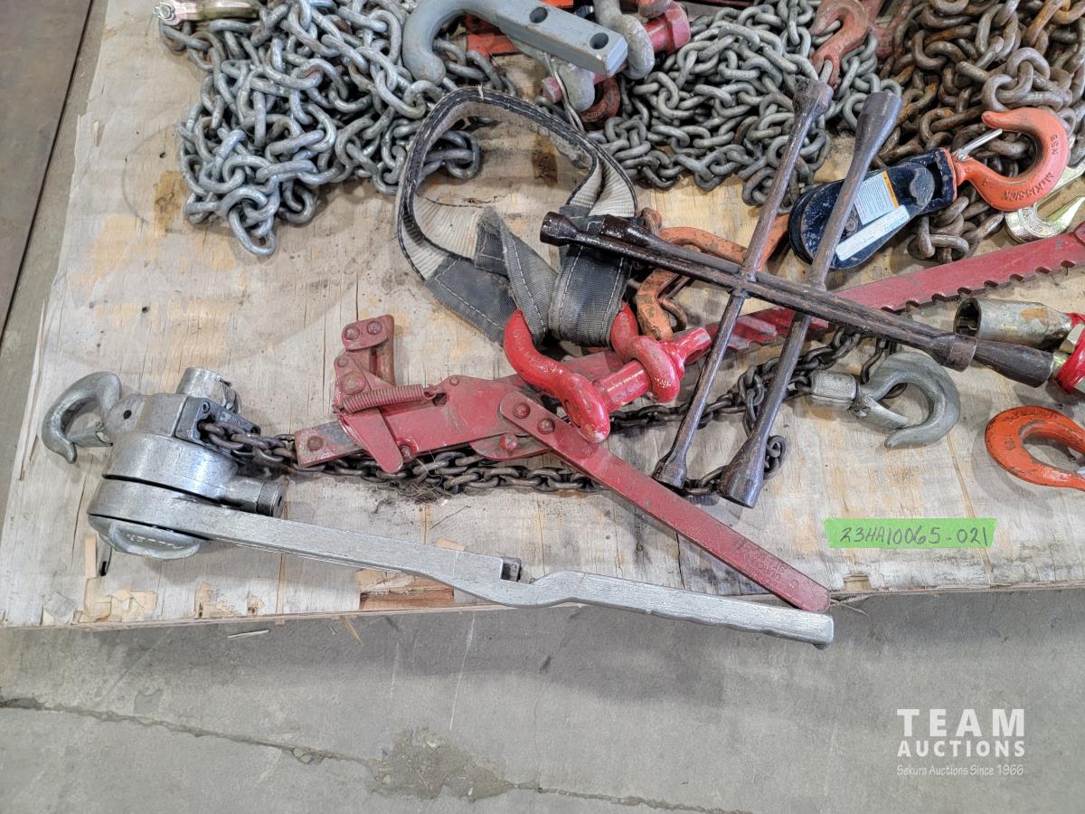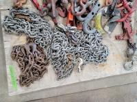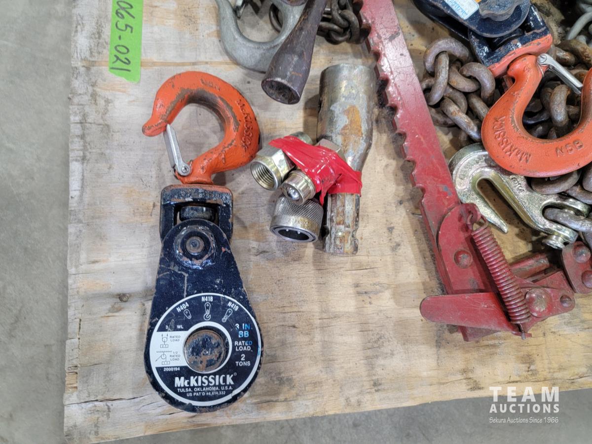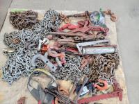 2024 Qty of Chains and Hooks, Assorted Boomers, Clamps, Chain Hoist and Grease Gun