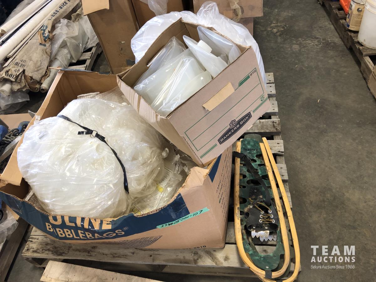1017 Qty of Filtration Socks, Bubble Wrap Bags, Collapsible Plastic Bottles and Snowshoes