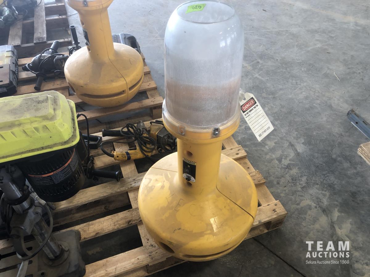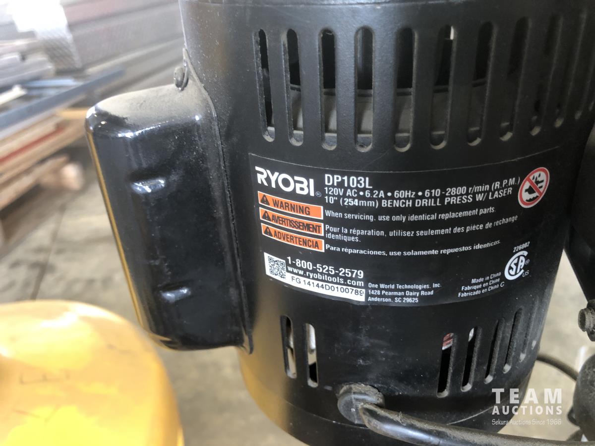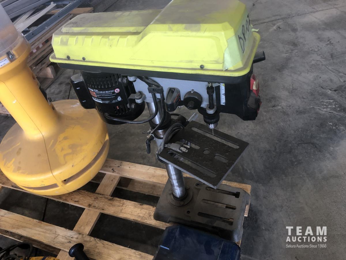 Wobblelight (inoperable), Ryobi drill press, Dewalt jig saw, (2) Dewalt hammer drills and reciprocating saw with case