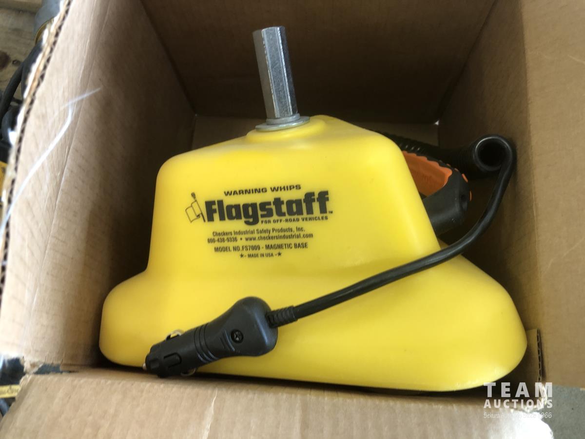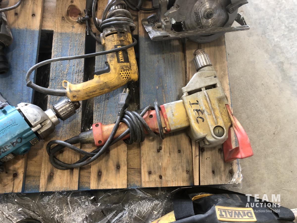 Flagstaff whip holder, quantity of Dewalt, Milwaukee and Makita hammer drills and circular saw