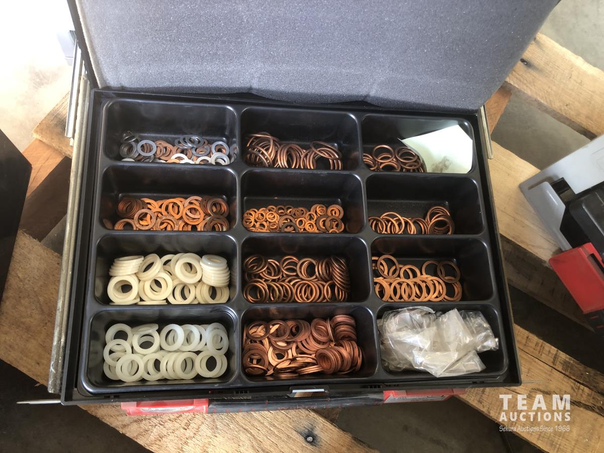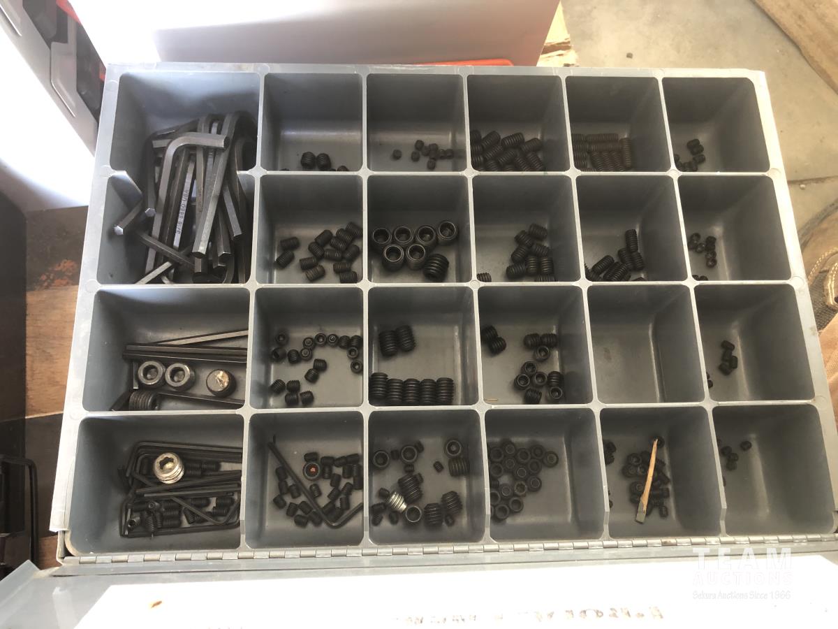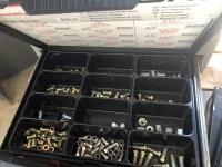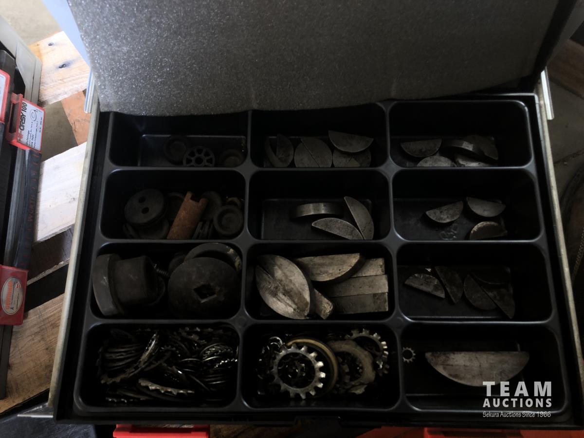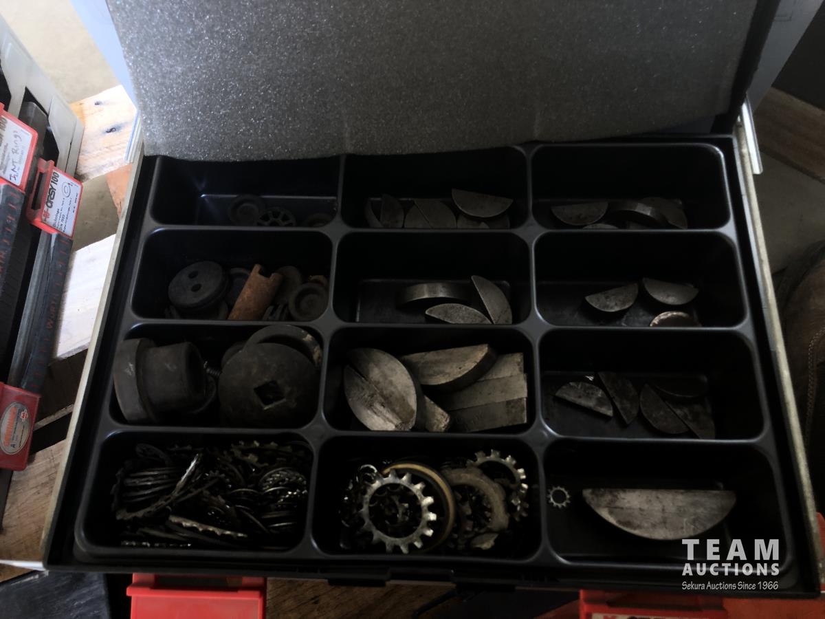 Bushings, set screws, split pins, vehicle electric leads, snap rings, storage cases, bottle jack, steel dowling and assorted bolts
