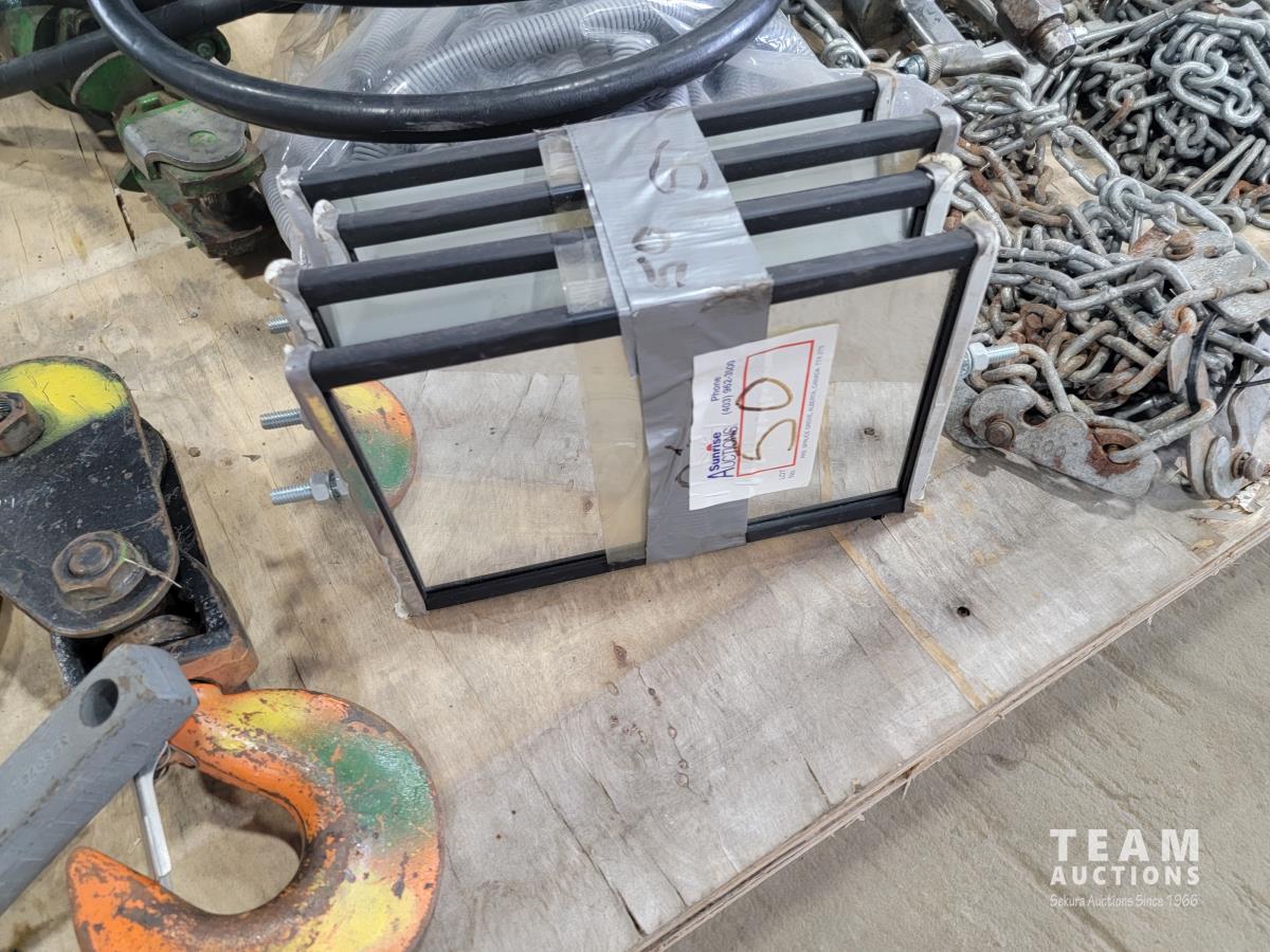 (2) Hydraulic cylinders, (2) sets of mirrors, paint sprayer, plastic hose and qty of chains
