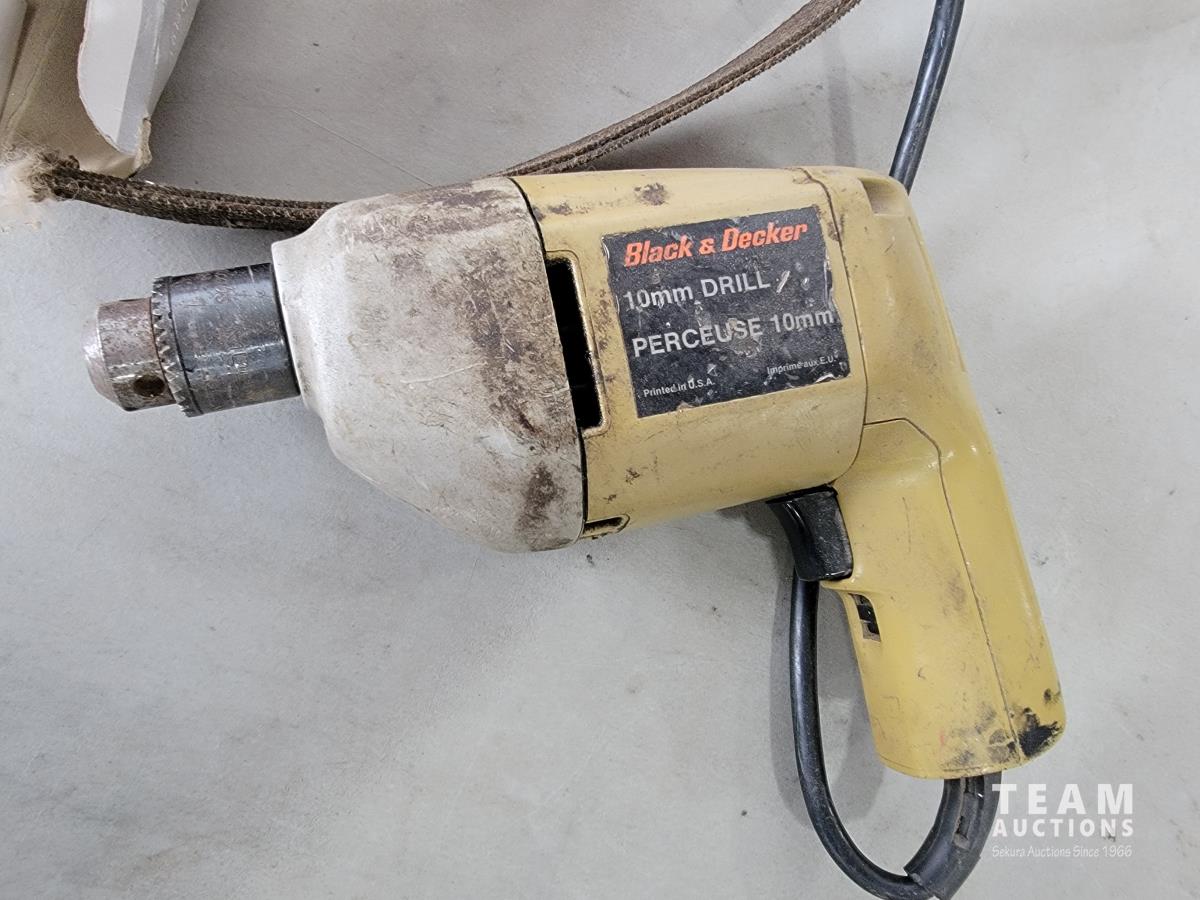 B&D drill, battery charger, miscellaneous items